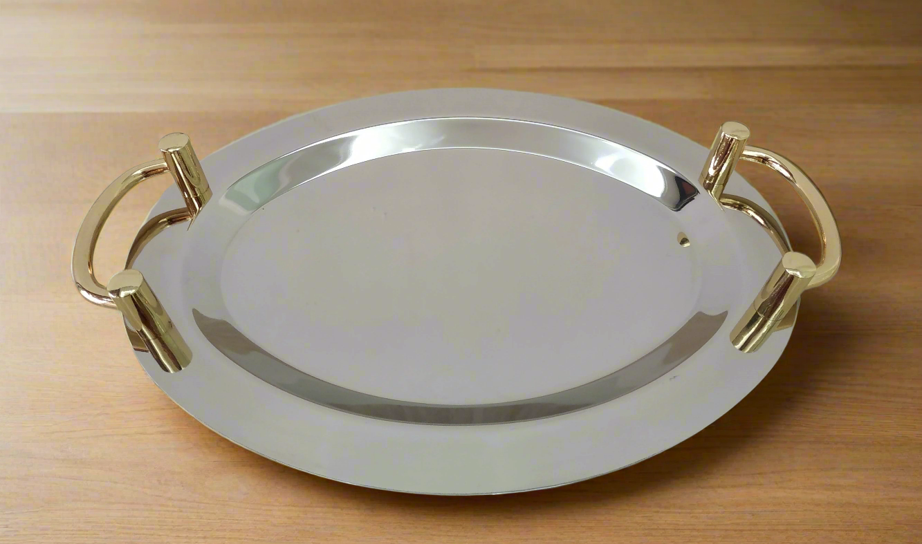 16" Stainless Steel Round Serving Tray with Gold Handles