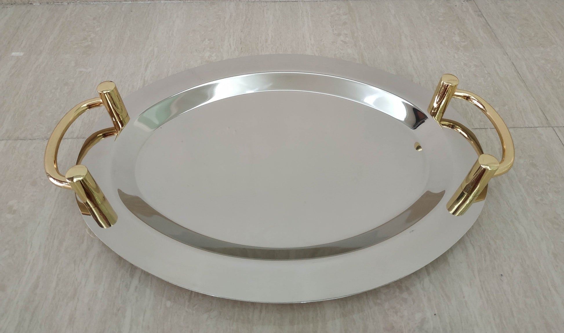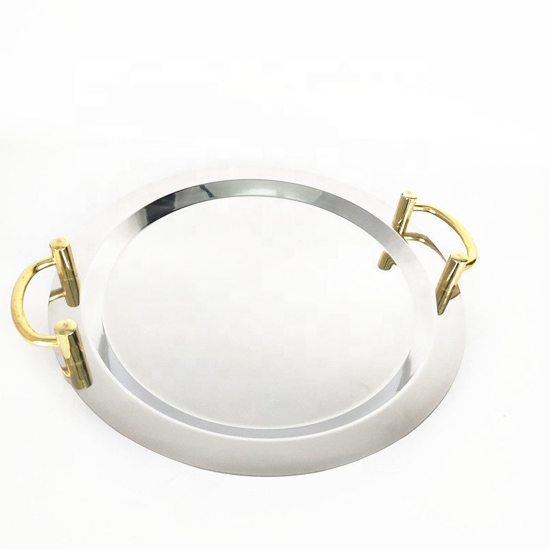 - 16" Stainless Steel Round Serving Tray with Gold Handles