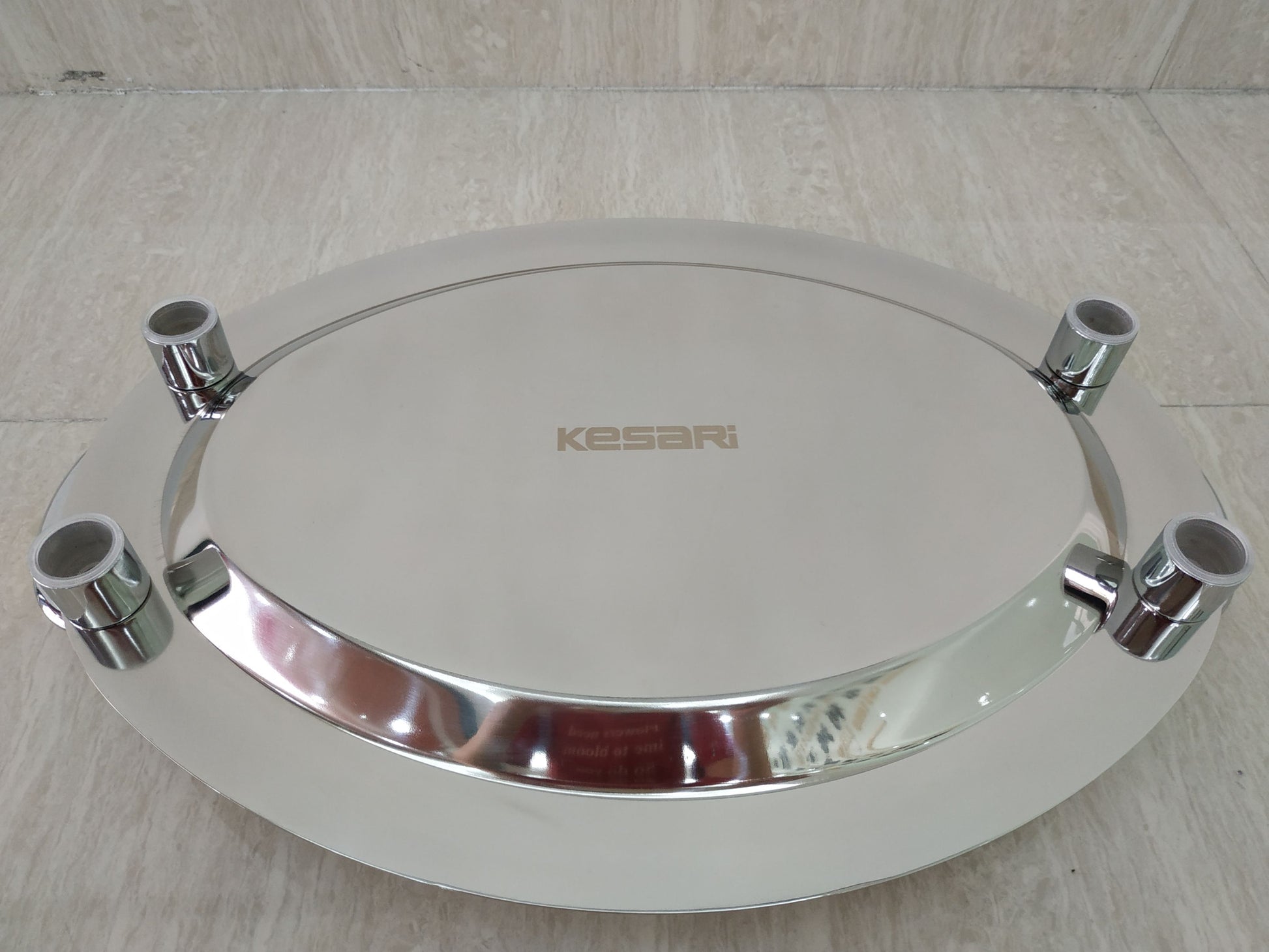 - 16" Stainless Steel Round Serving Tray with Silver Handles .