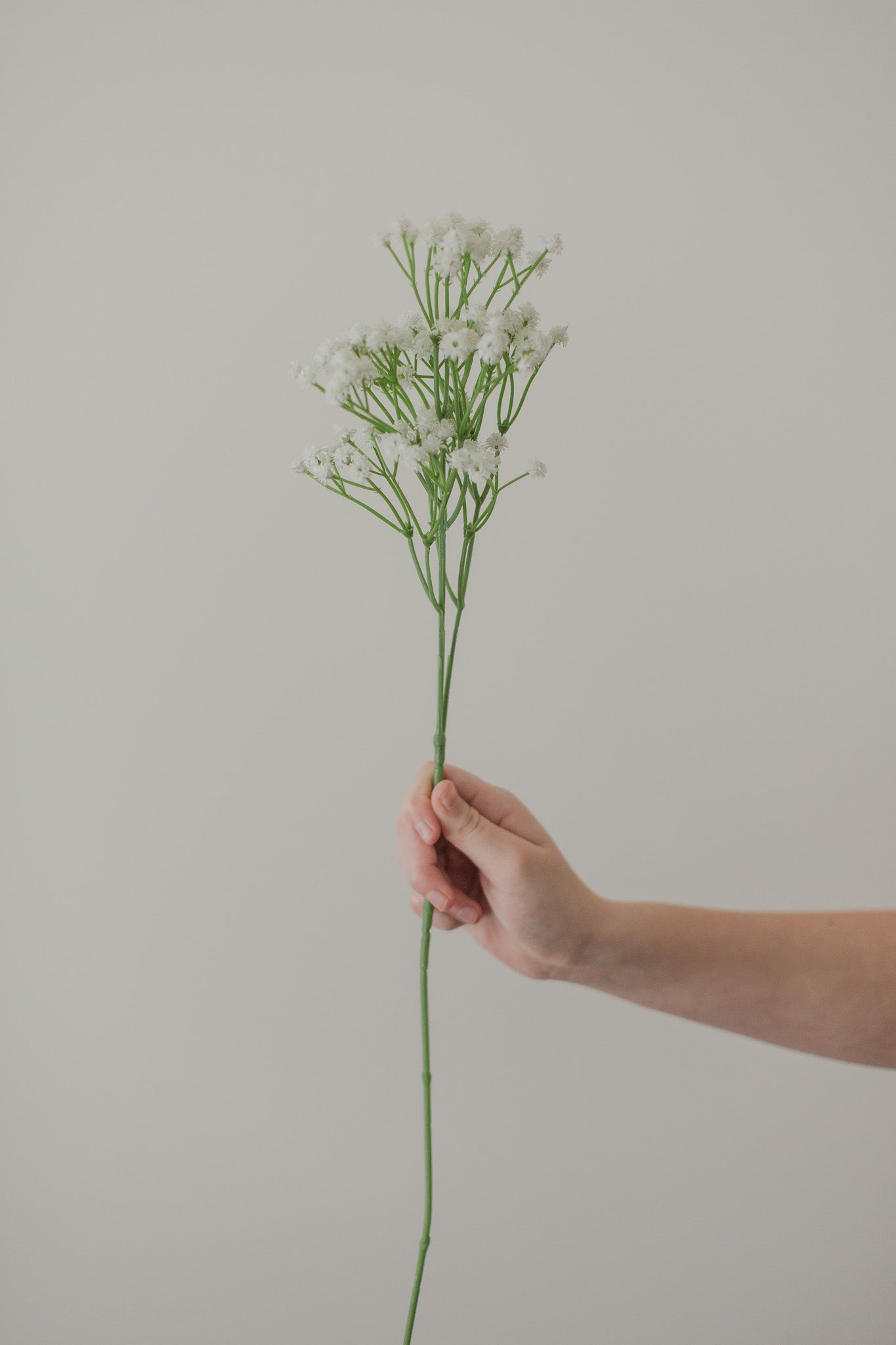 Babies breath-like artificial flowers with a long stem and many small flowers. Please note that artificial babies breath is not as closely replicated as some other types of flowers. Three options available.