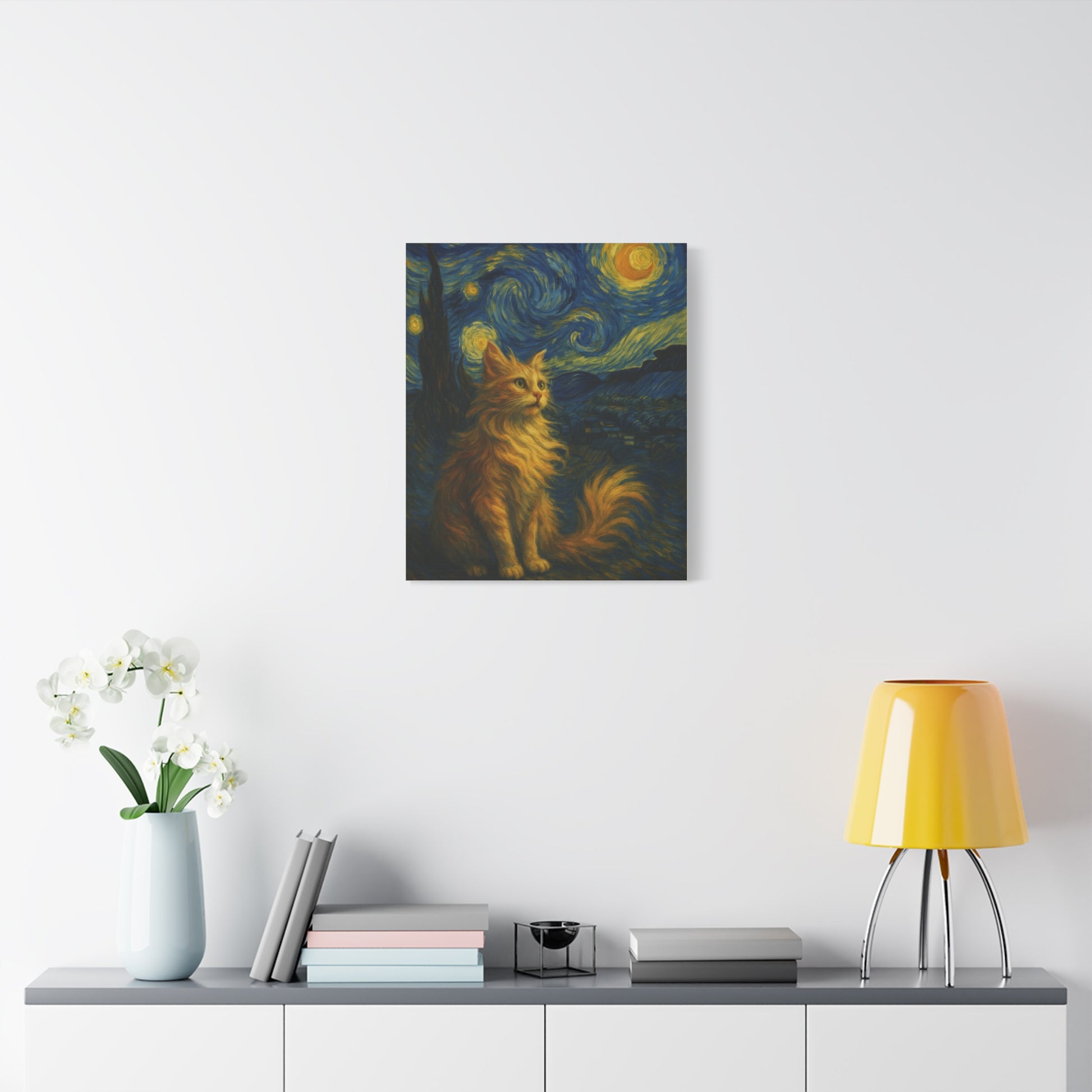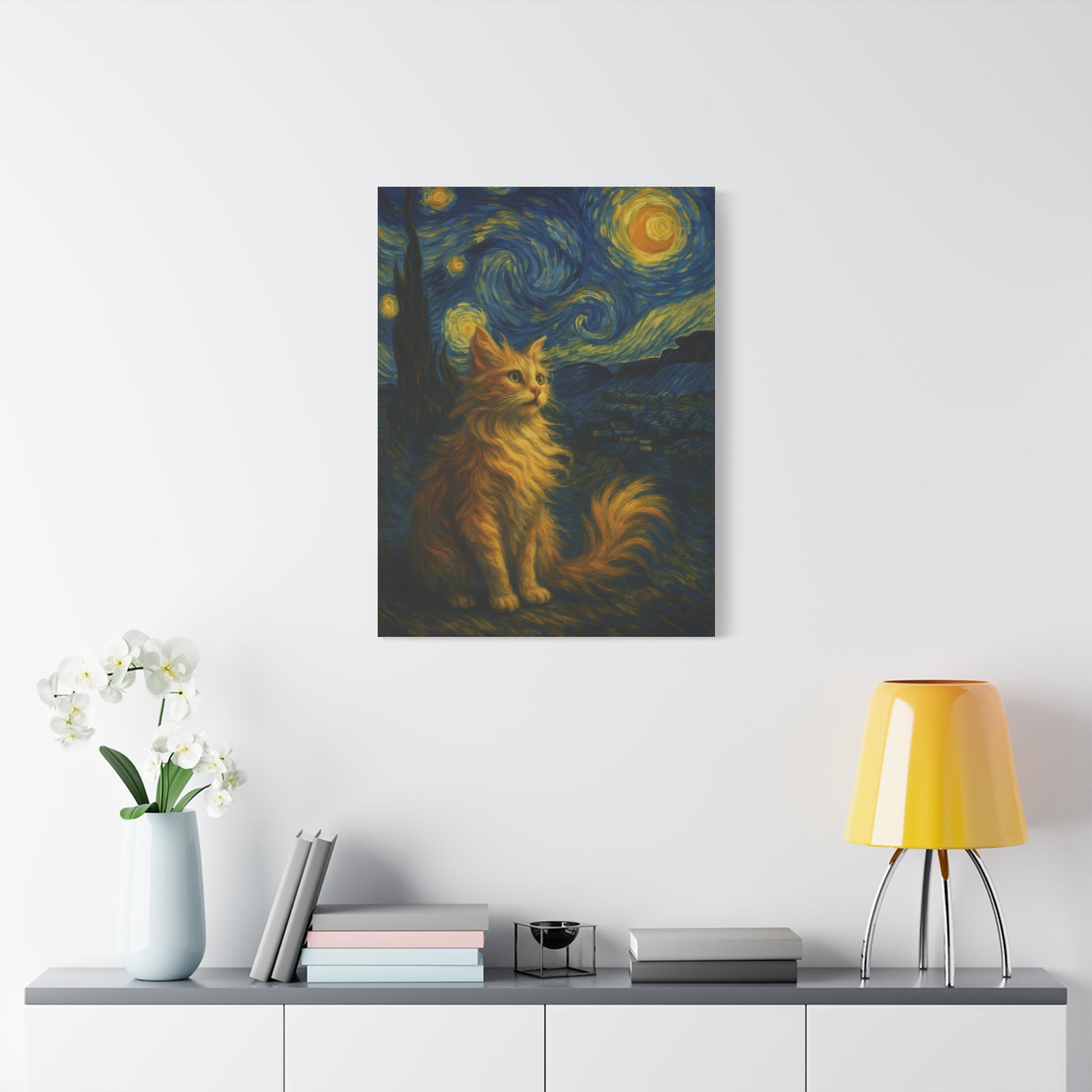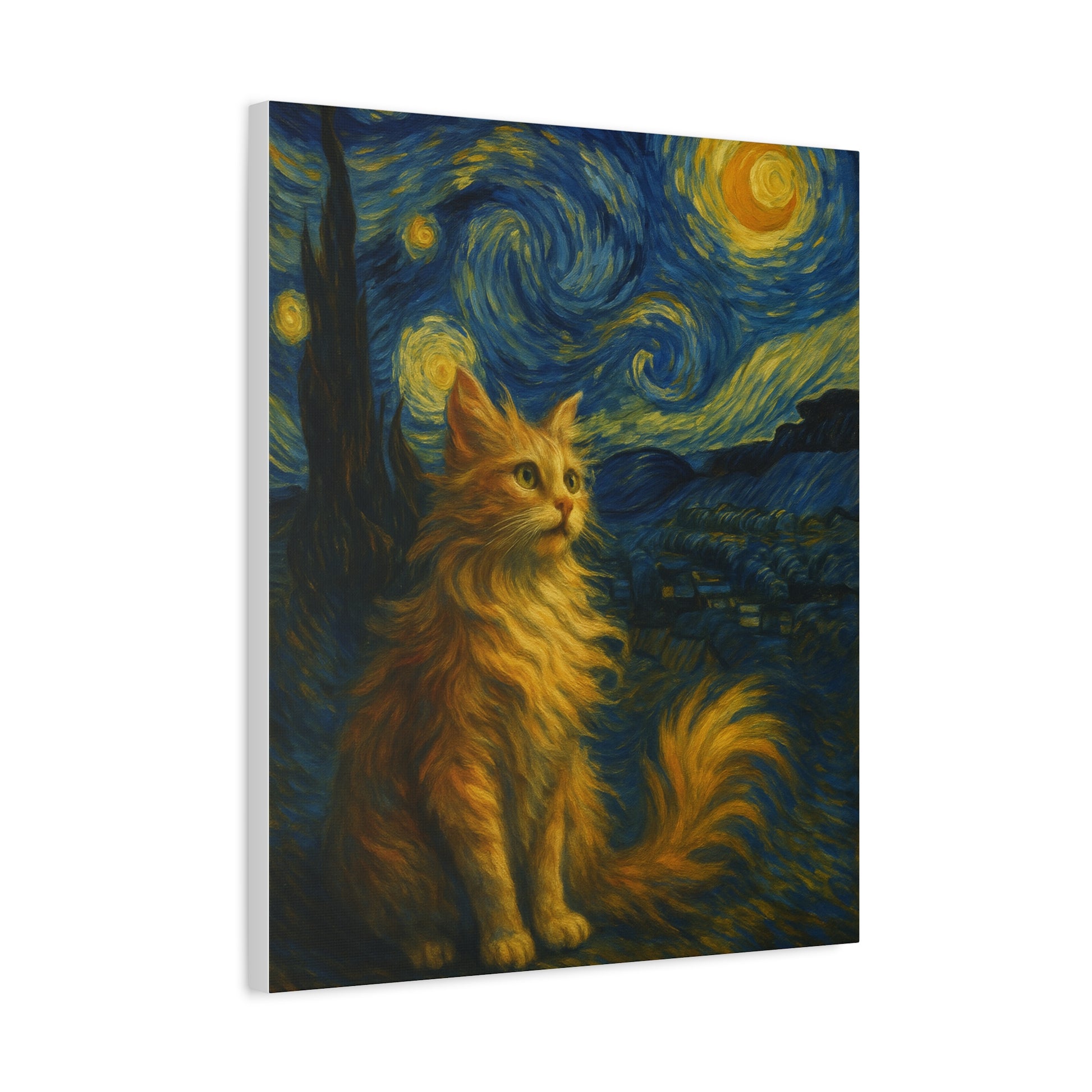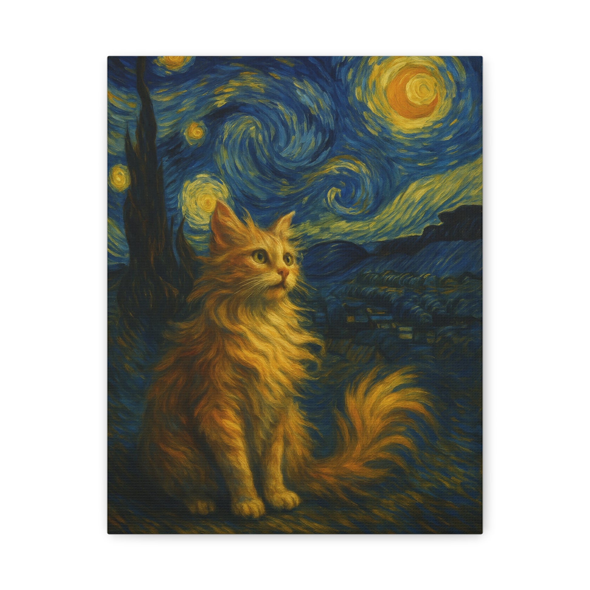 Canvas Print, Cat in Starry Night, Funny Cats, Colourful Vibrant, Matte Wall Art, Stretched Canvas, Home Decor, Gift for Cat Lovers