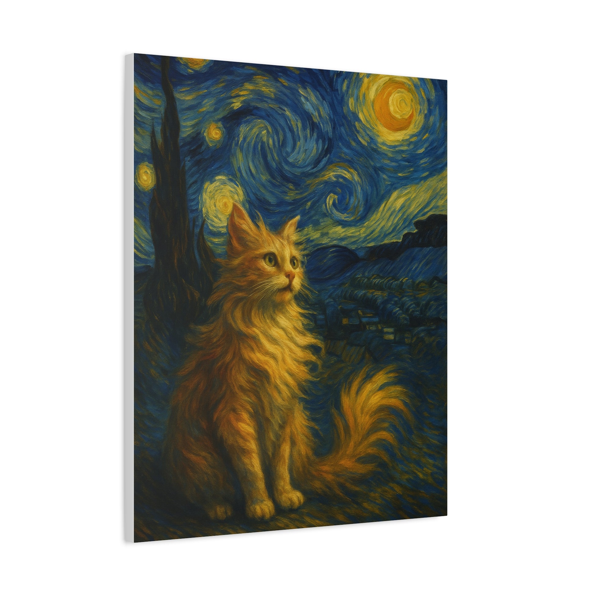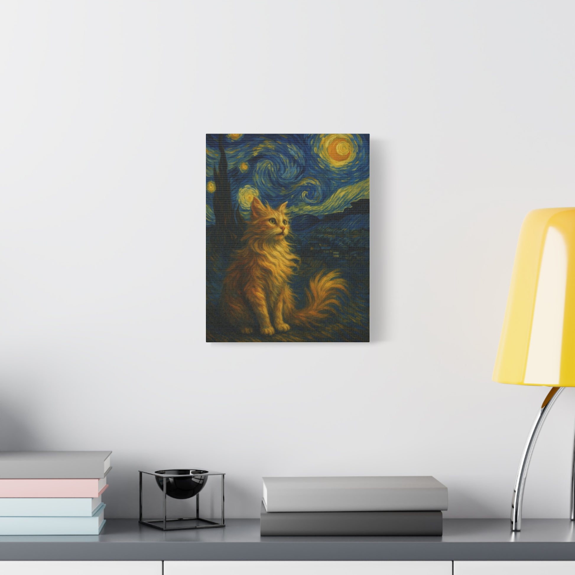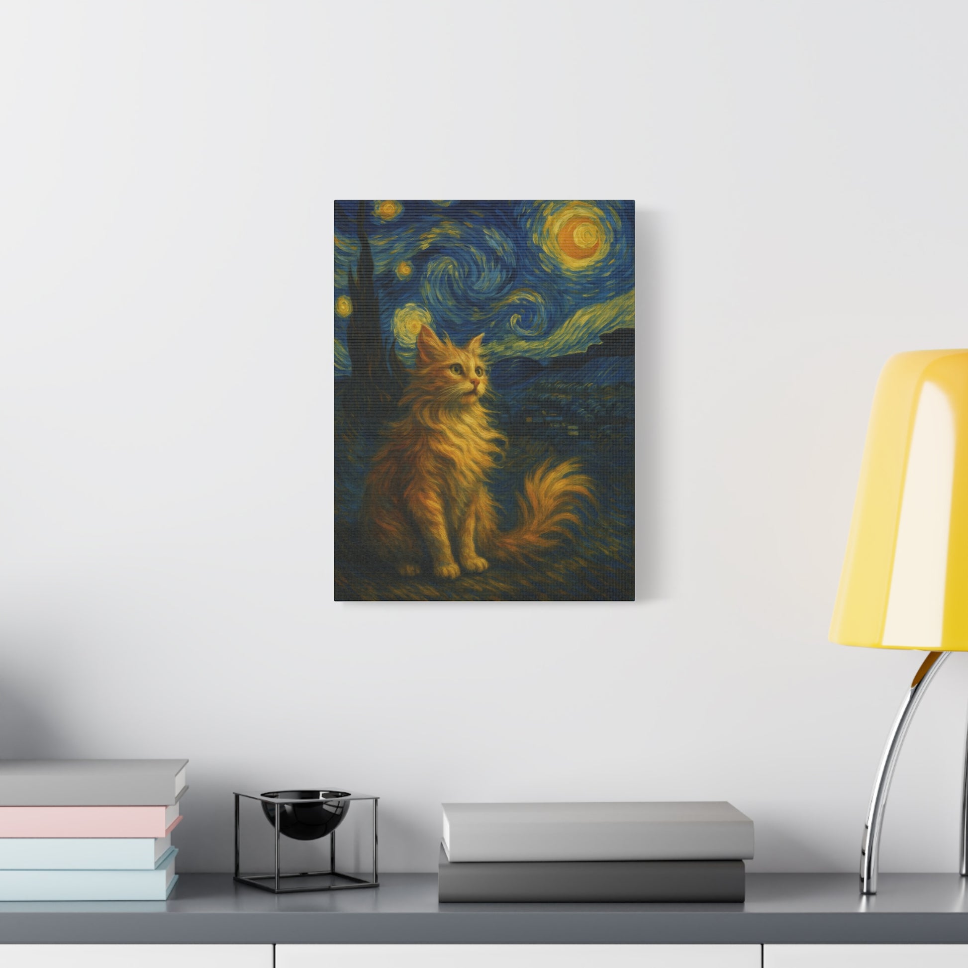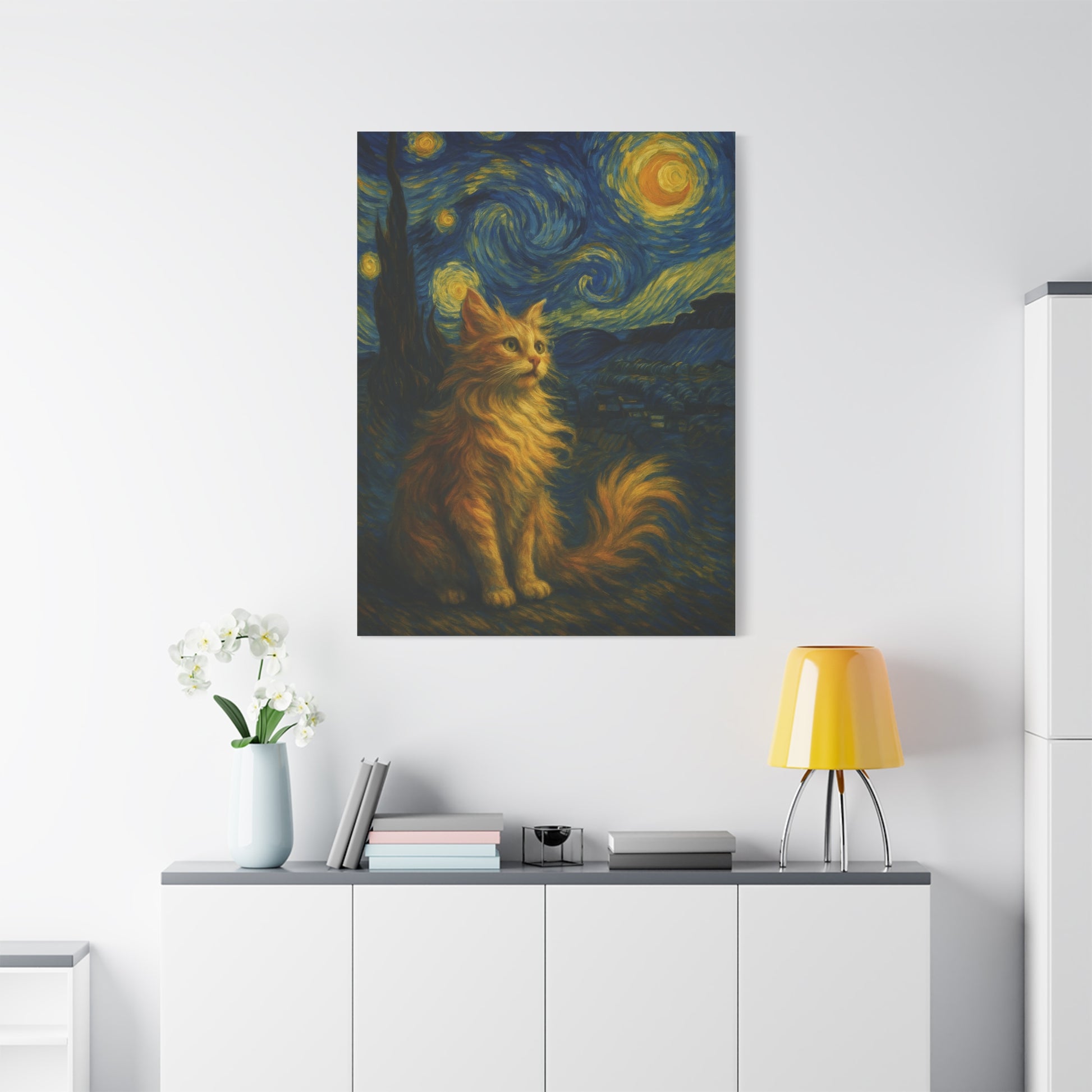 Canvas Print, Cat in Starry Night, Funny Cats, Colourful Vibrant, Matte Wall Art, Stretched Canvas, Home Decor, Gift for Cat Lovers