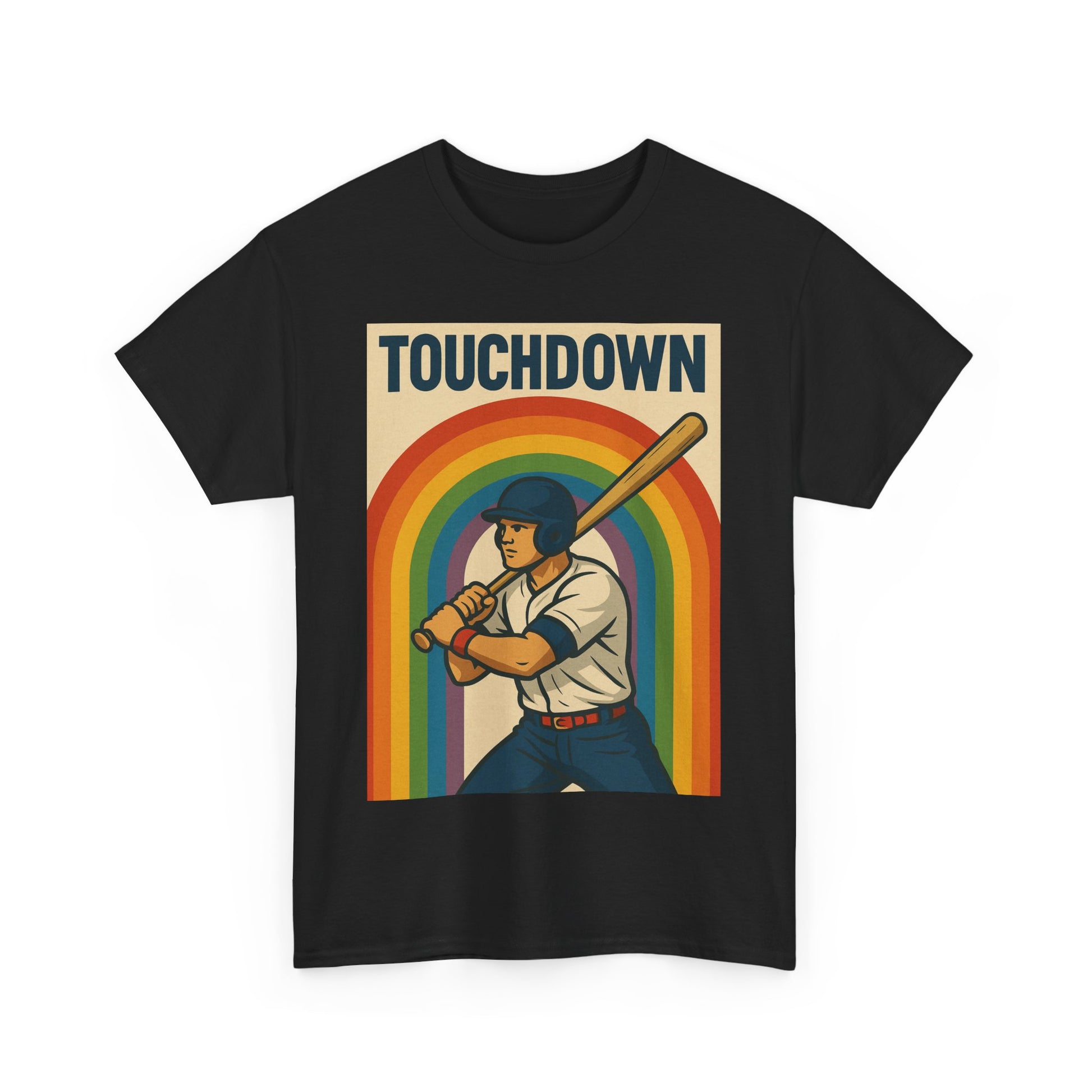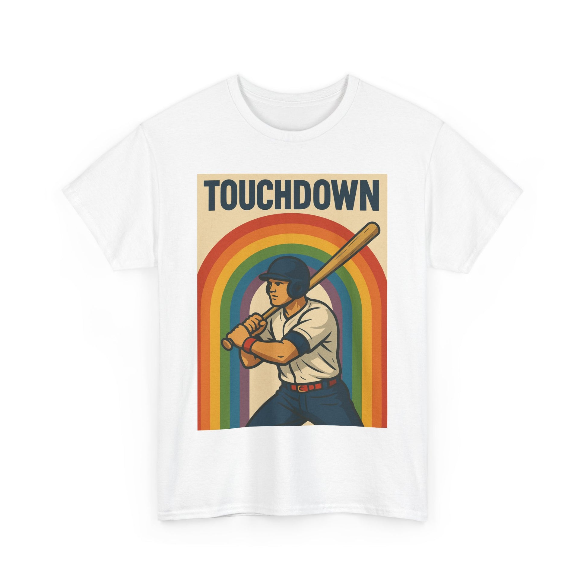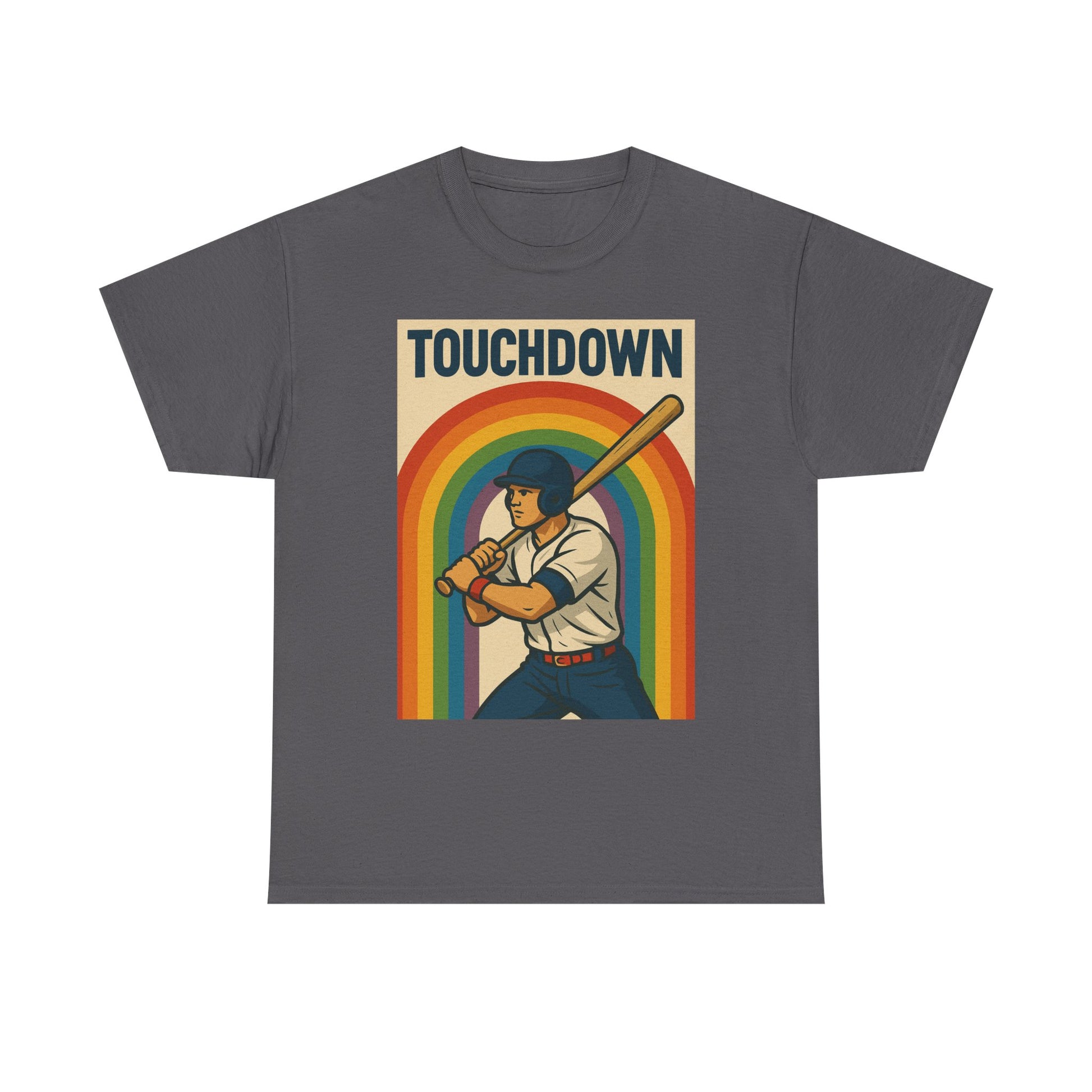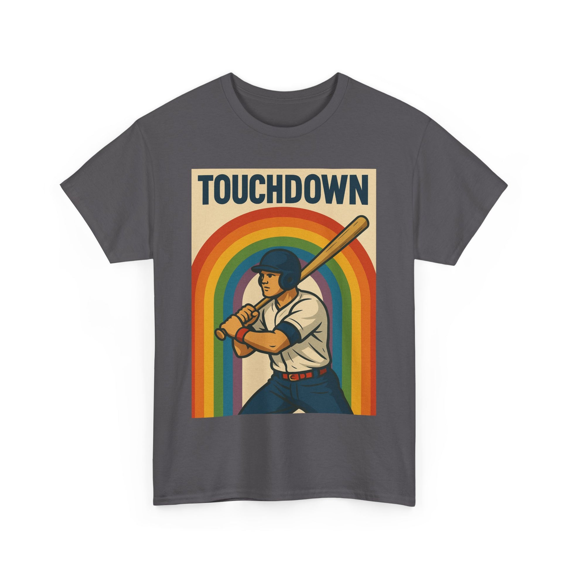 This funny baseball t-shirt with the saying 'touchdown' will bring a playful and sporty vibe to your wardrobe. Perfect for sports lovers and those with a good sense of humor, this unisex heavy cotton tee is ideal for casual outings, game days, and sports-themed parties.