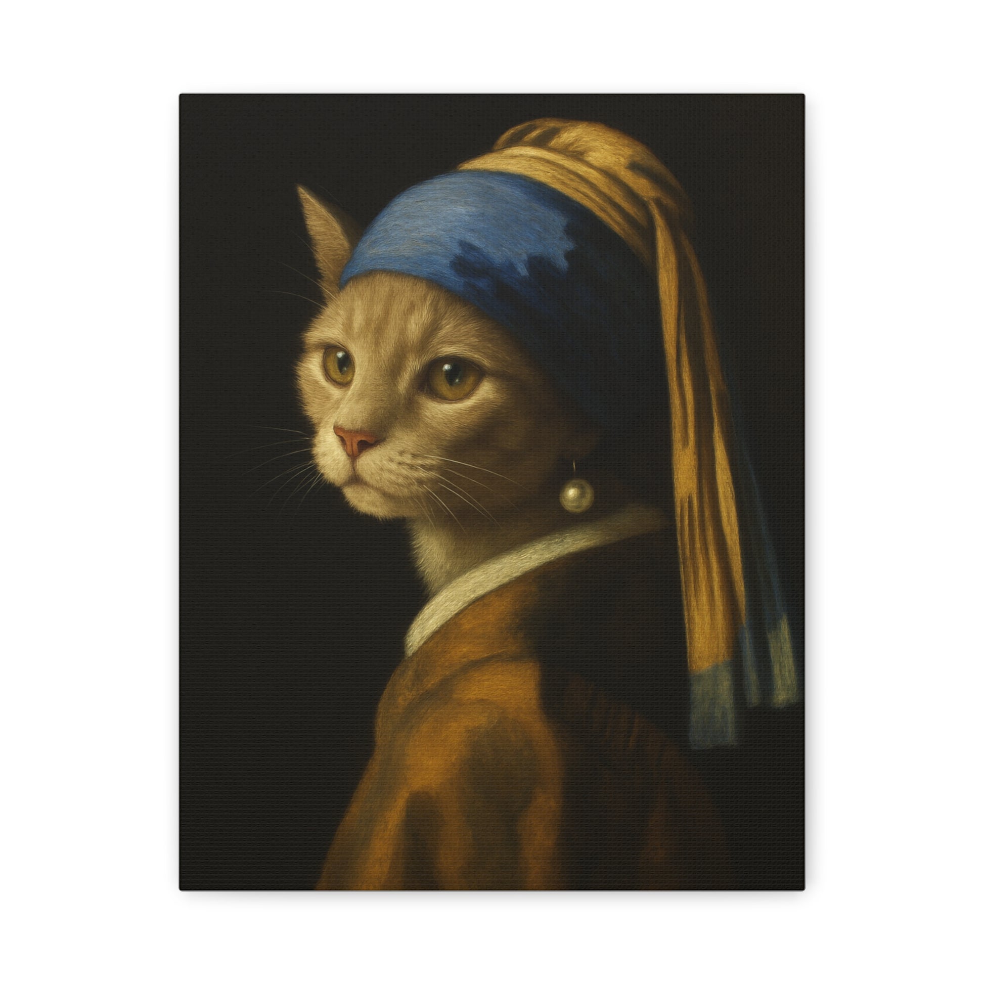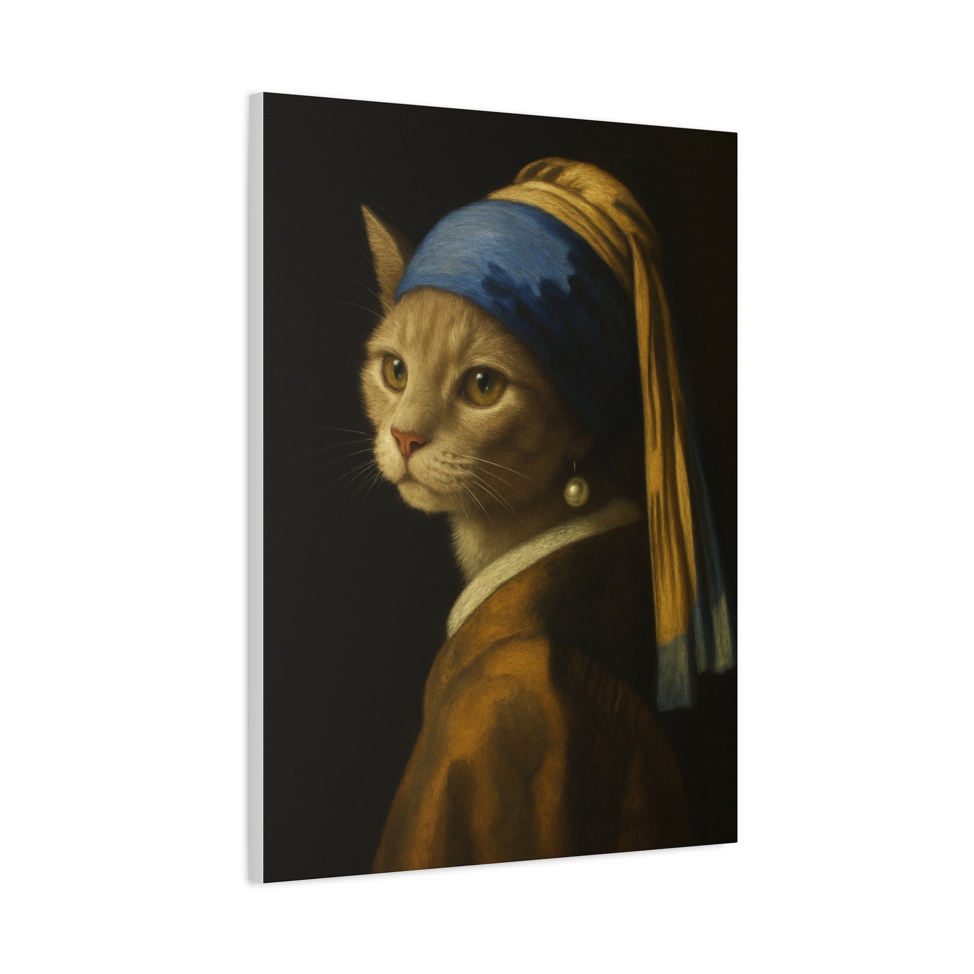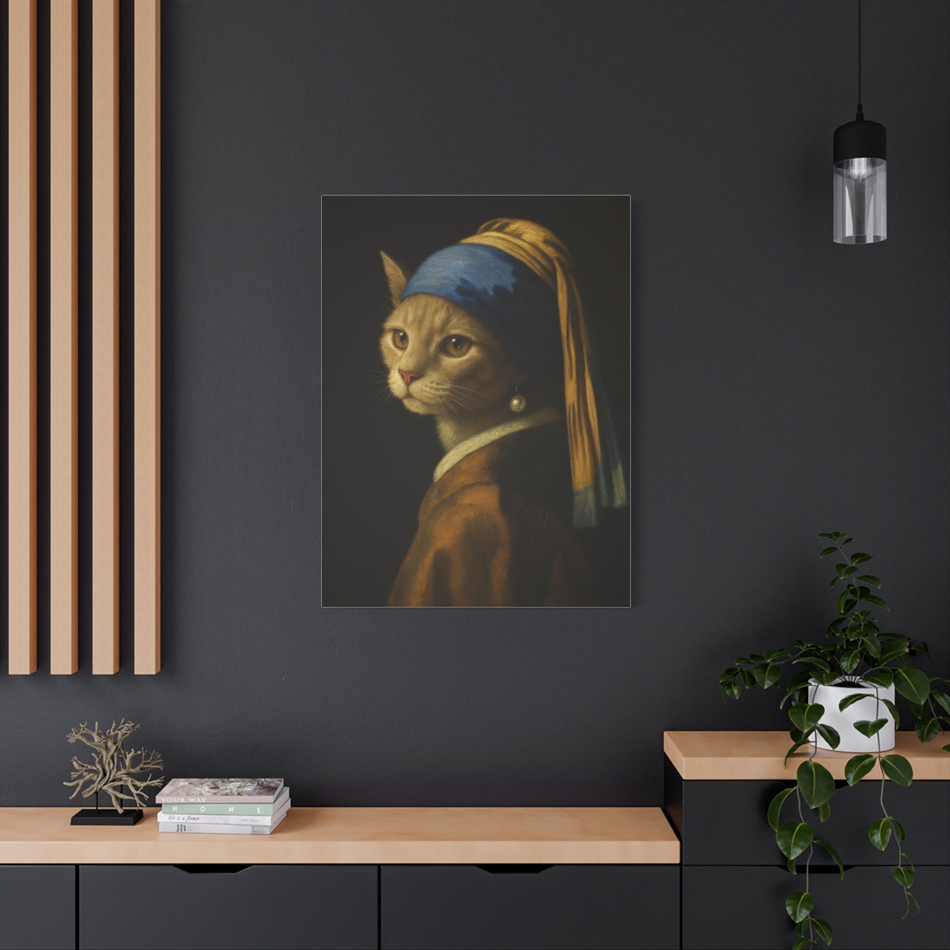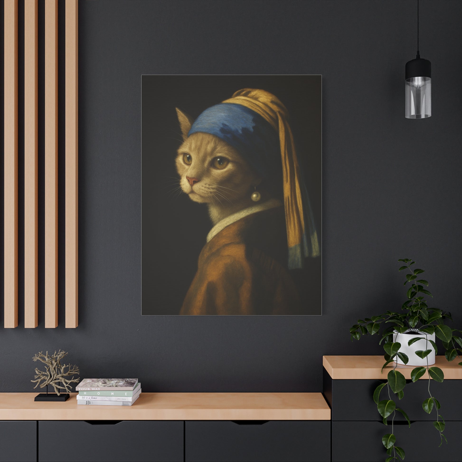 Elegant cat canvas featuring a girl with the pearl earring, adding a touch of sophistication to any room. Perfect for art lovers and cat enthusiasts alike. Ideal for gifting on birthdays, holidays, and special occasions.