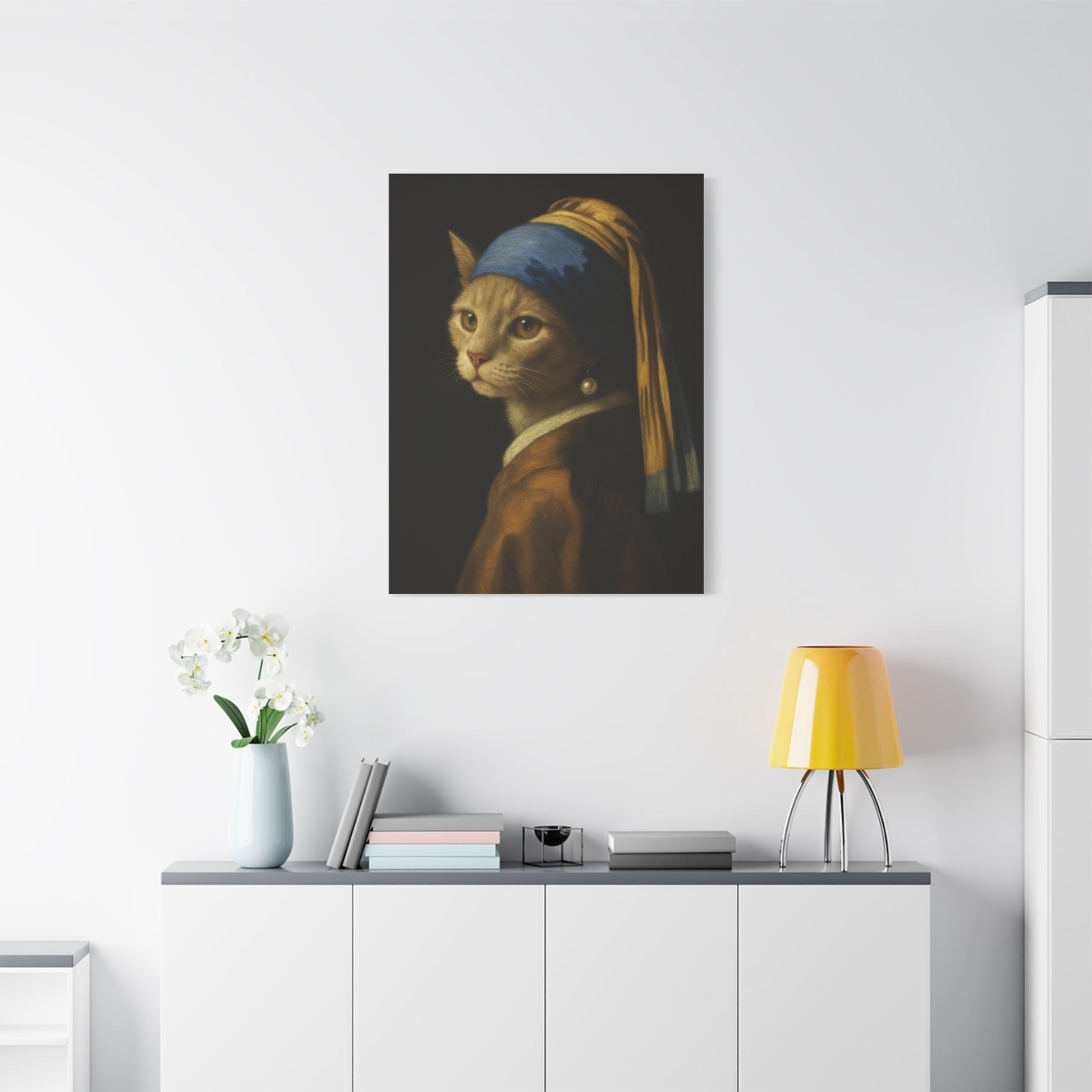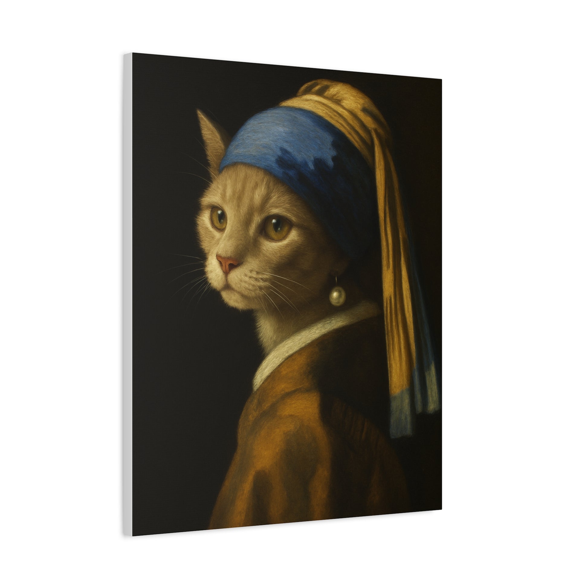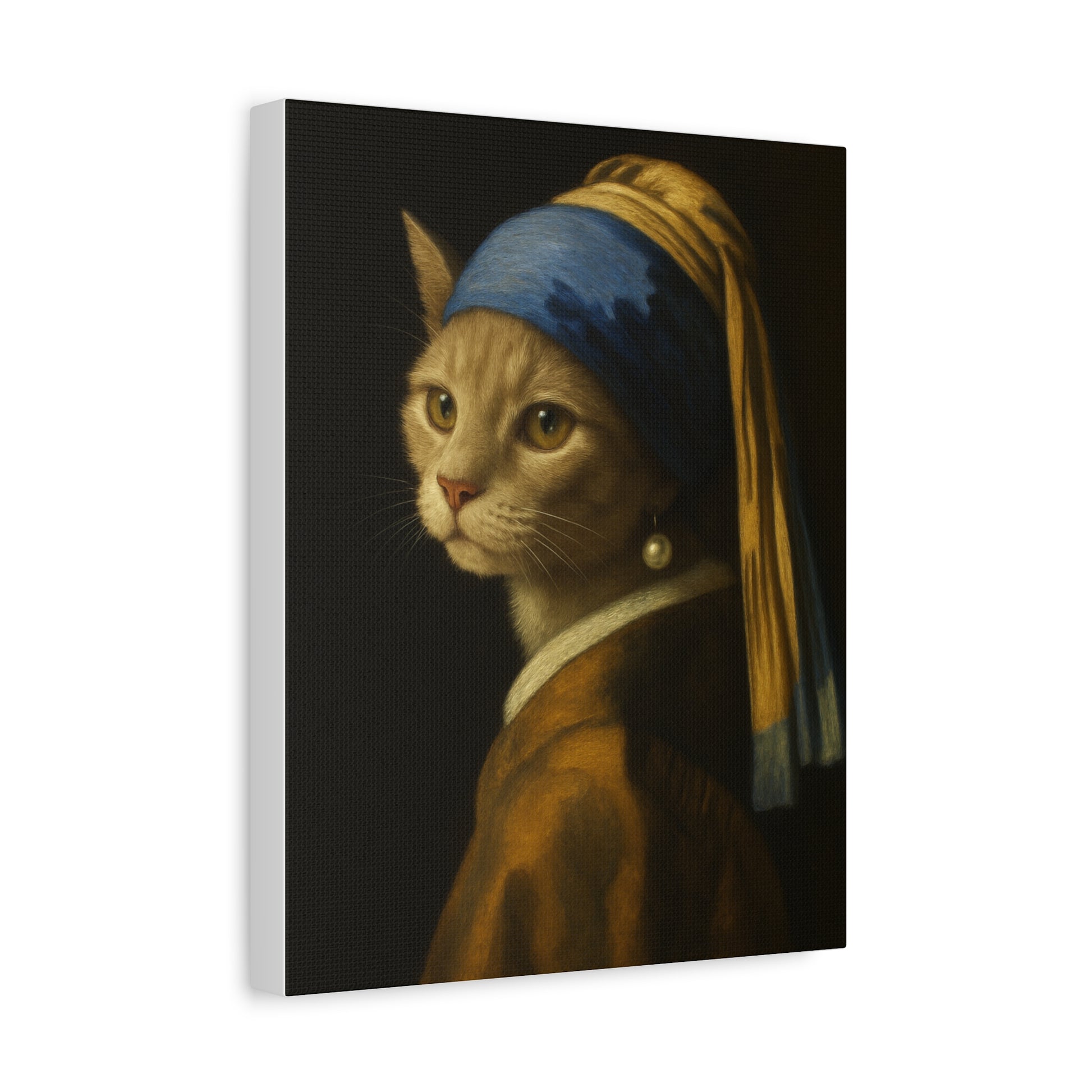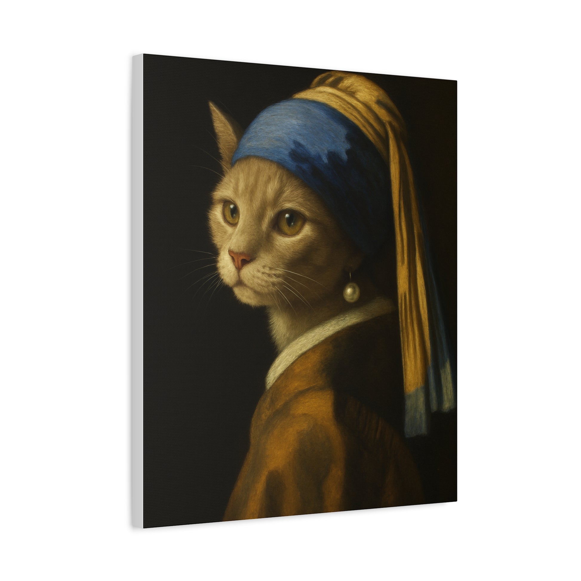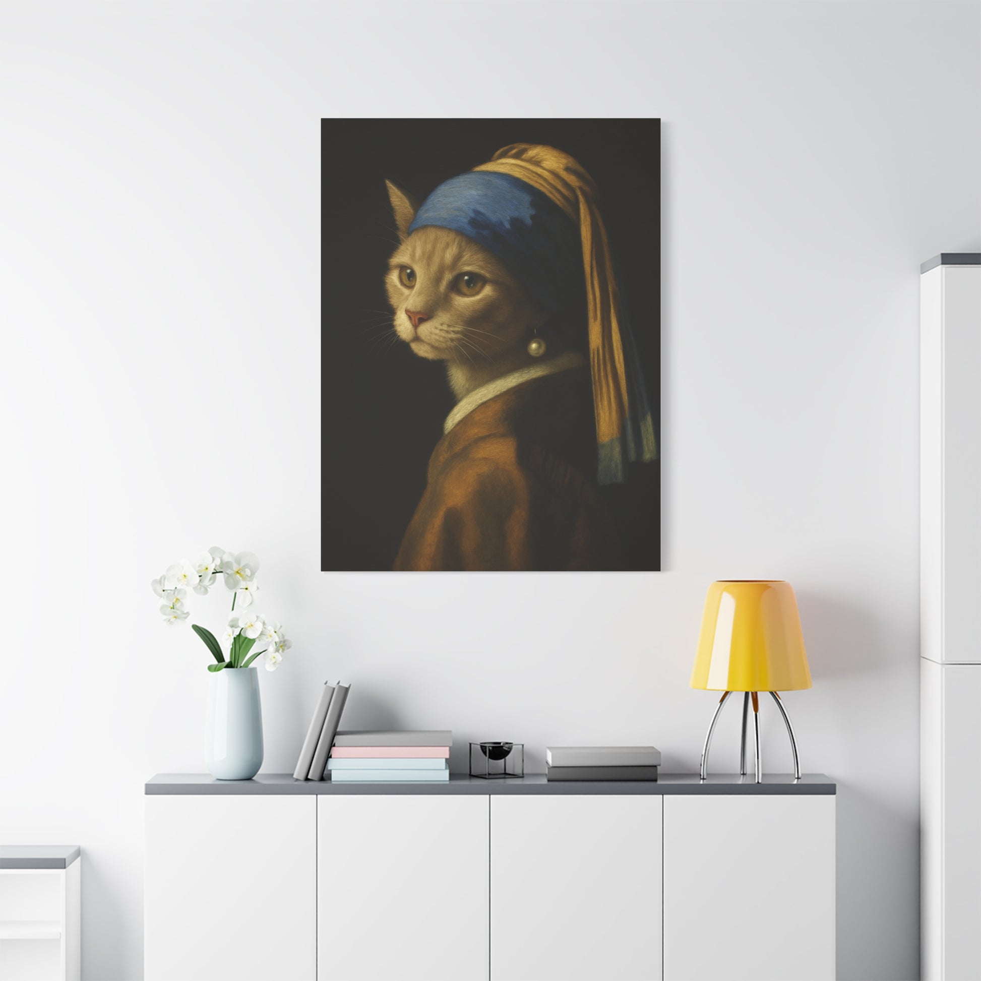 Elegant cat canvas featuring a girl with the pearl earring, adding a touch of sophistication to any room. Perfect for art lovers and cat enthusiasts alike. Ideal for gifting on birthdays, holidays, and special occasions.