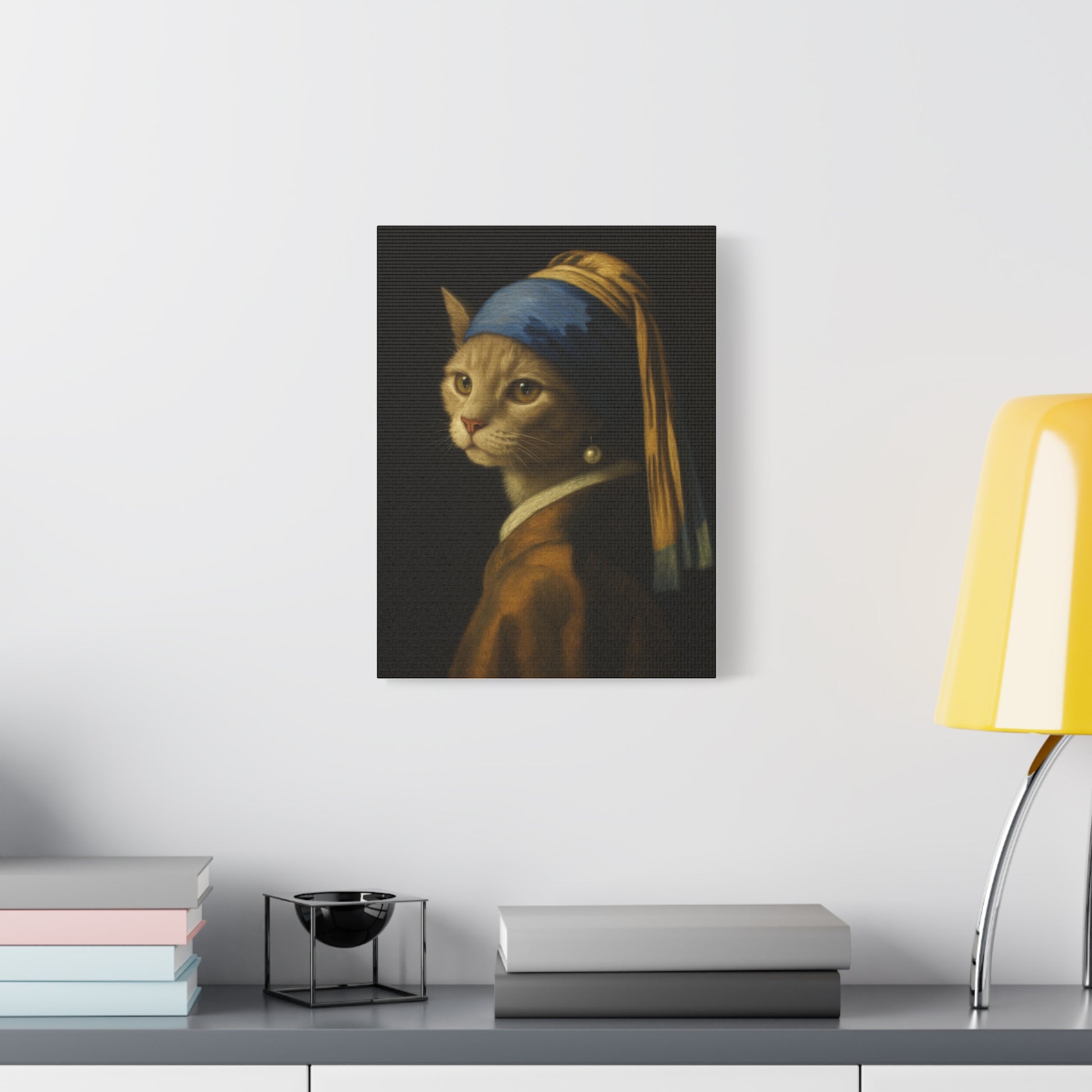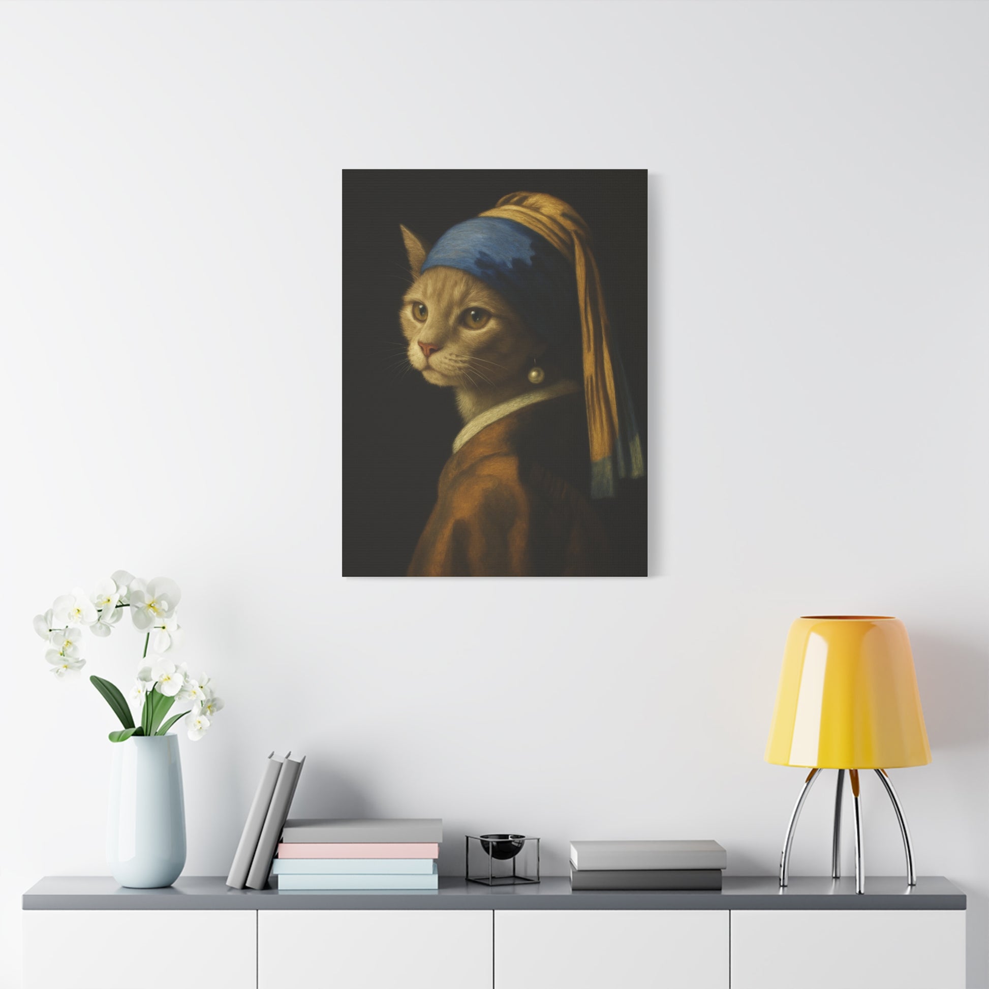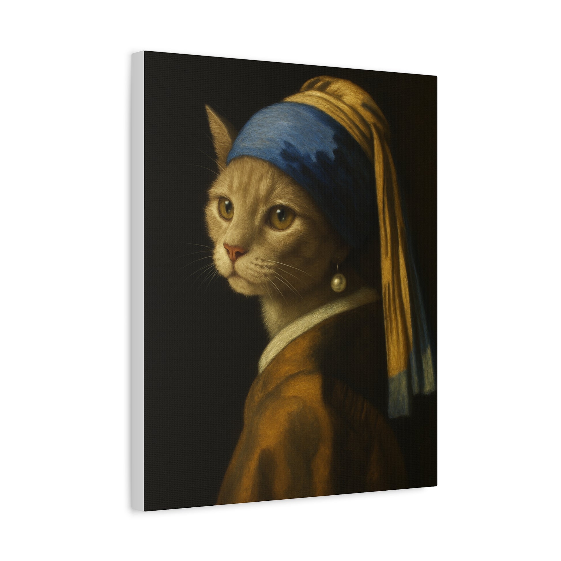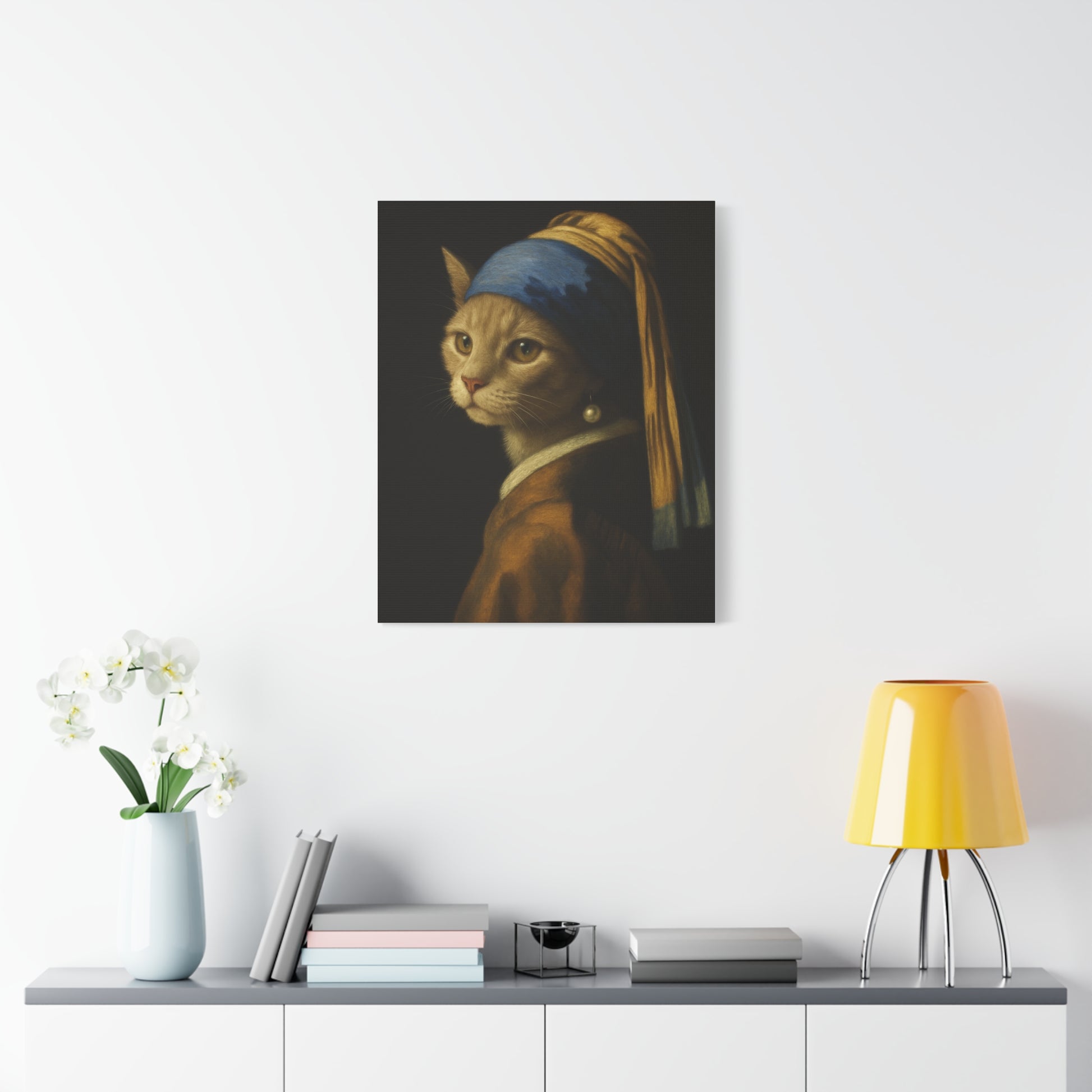 Elegant cat canvas featuring a girl with the pearl earring, adding a touch of sophistication to any room. Perfect for art lovers and cat enthusiasts alike. Ideal for gifting on birthdays, holidays, and special occasions.