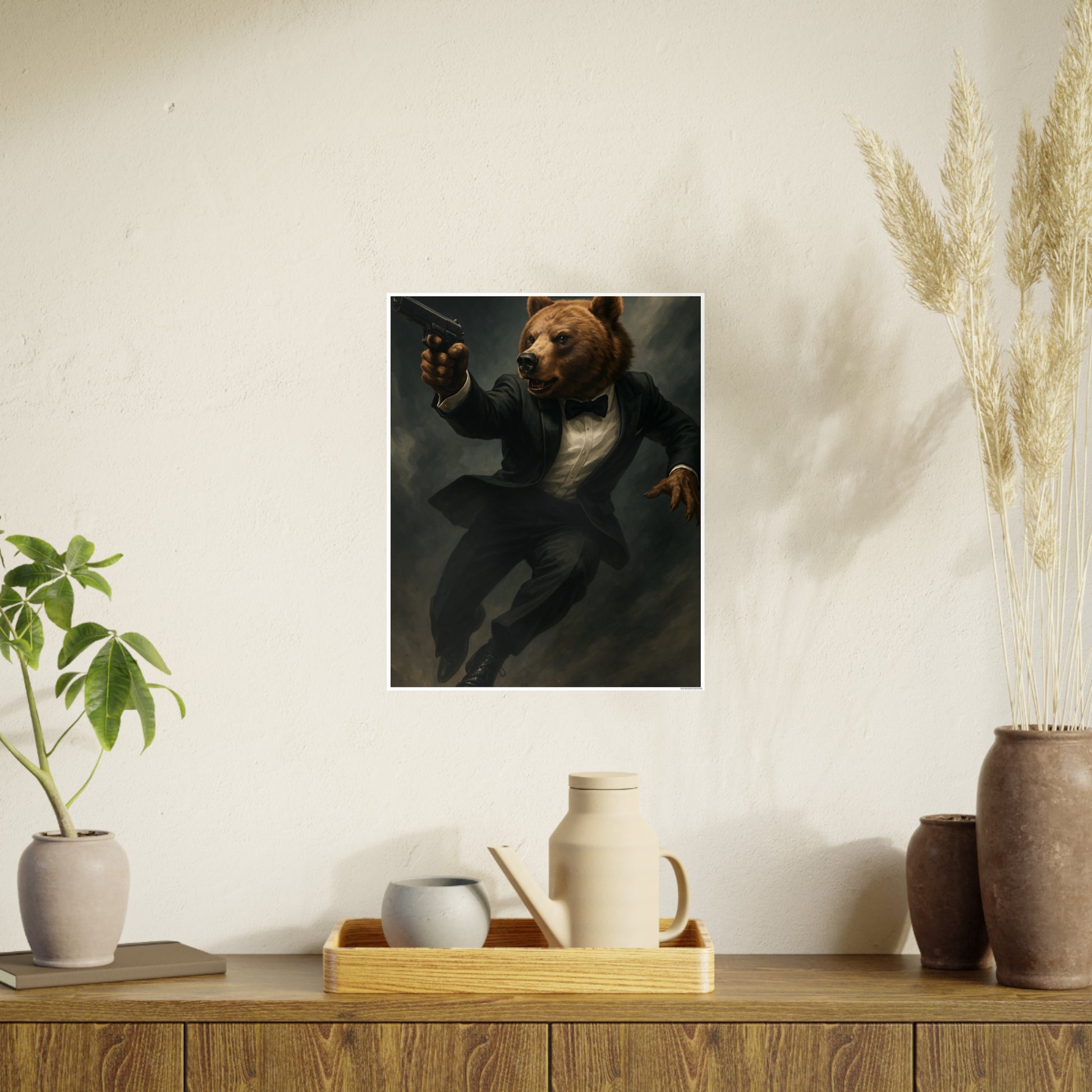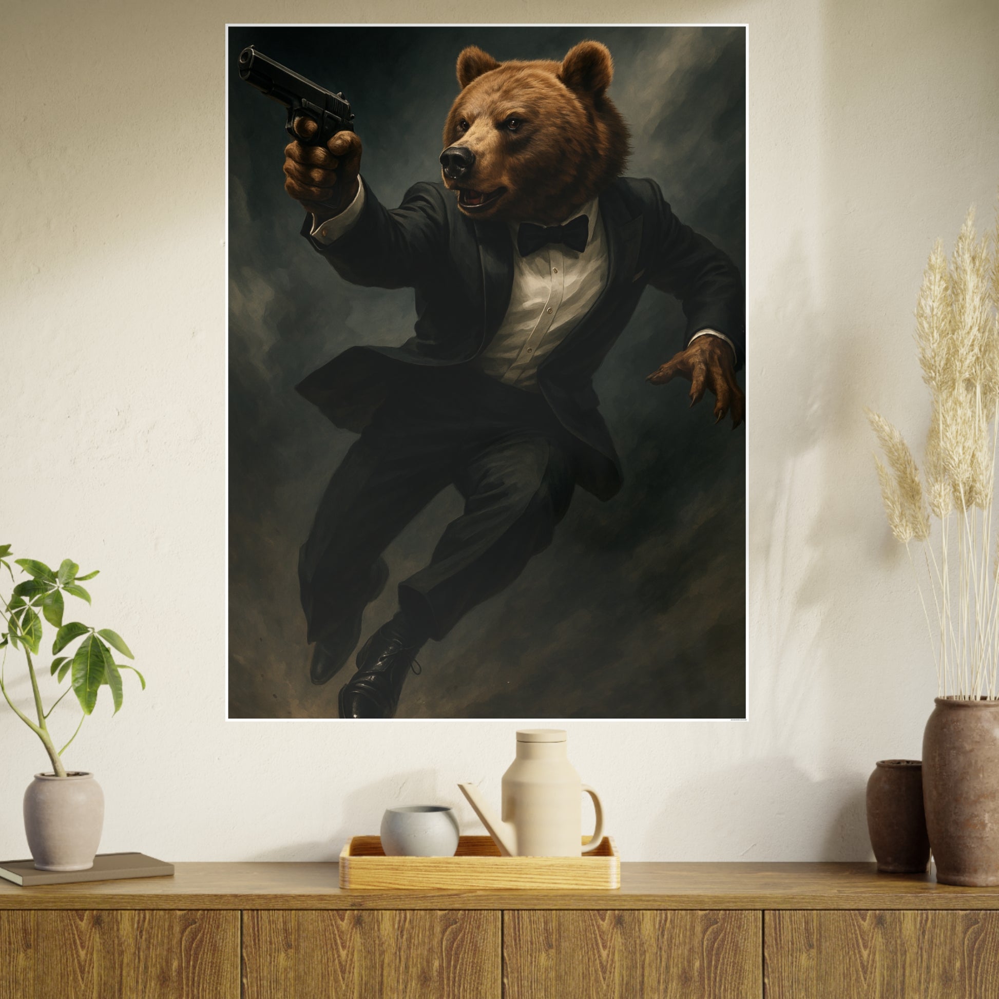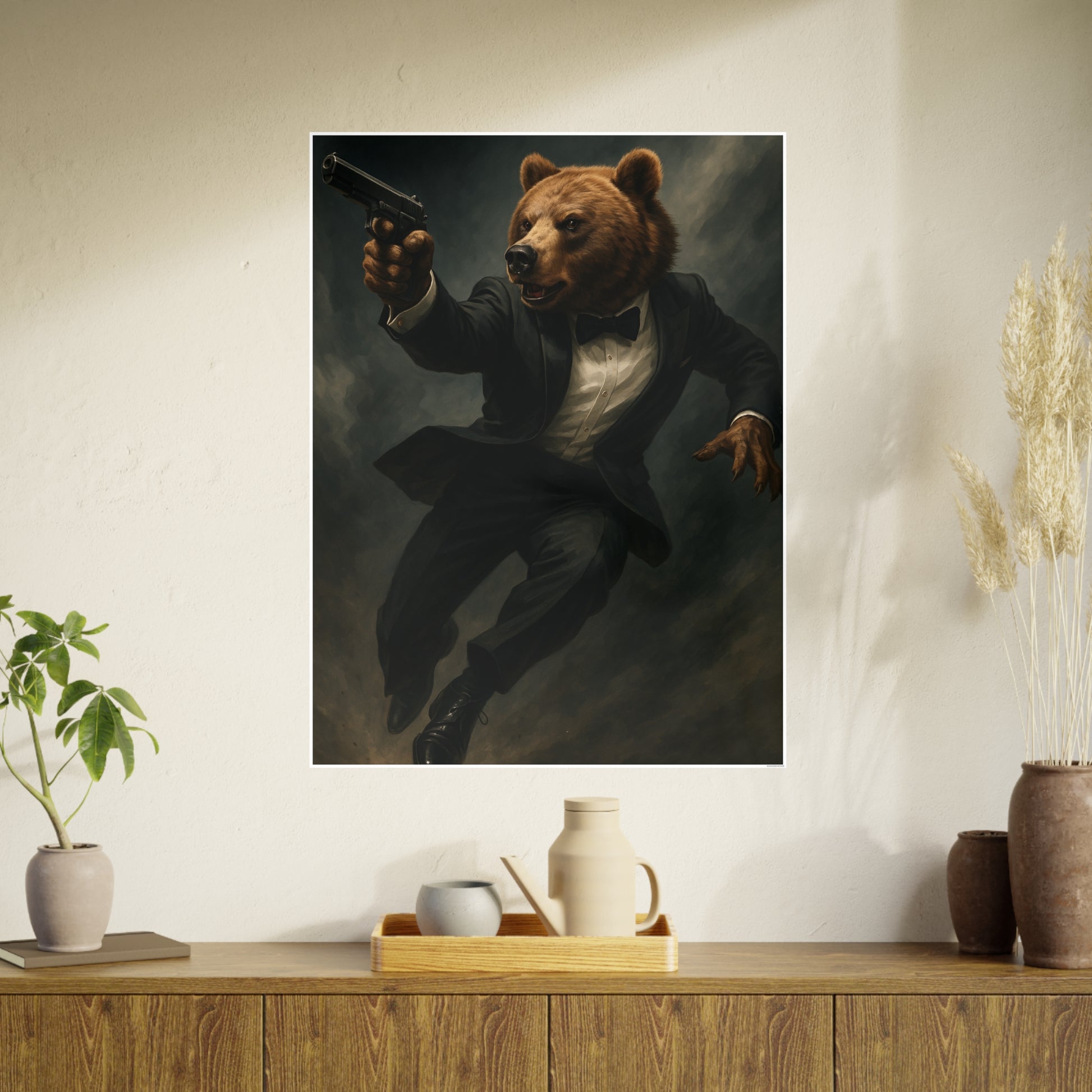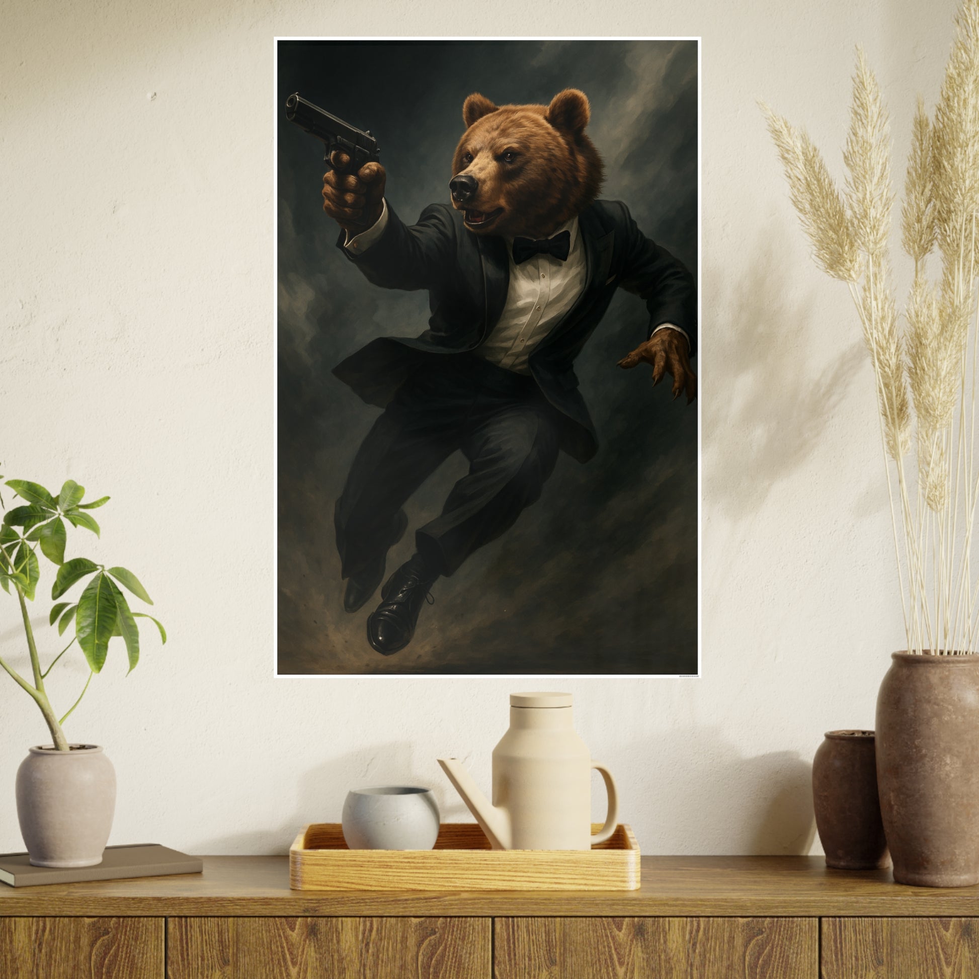 This James Bond inspired Bear Unique Wall Decor poster is the perfect addition to any home or office. With vibrant colors and a smooth satin finish, it brings a fun and creative atmosphere to any room. Ideal for animal lovers, it makes a great gift for those who appreciate unique interior design. Perfect for birthdays, housewarmings, or to add a touch of personality to any space.
