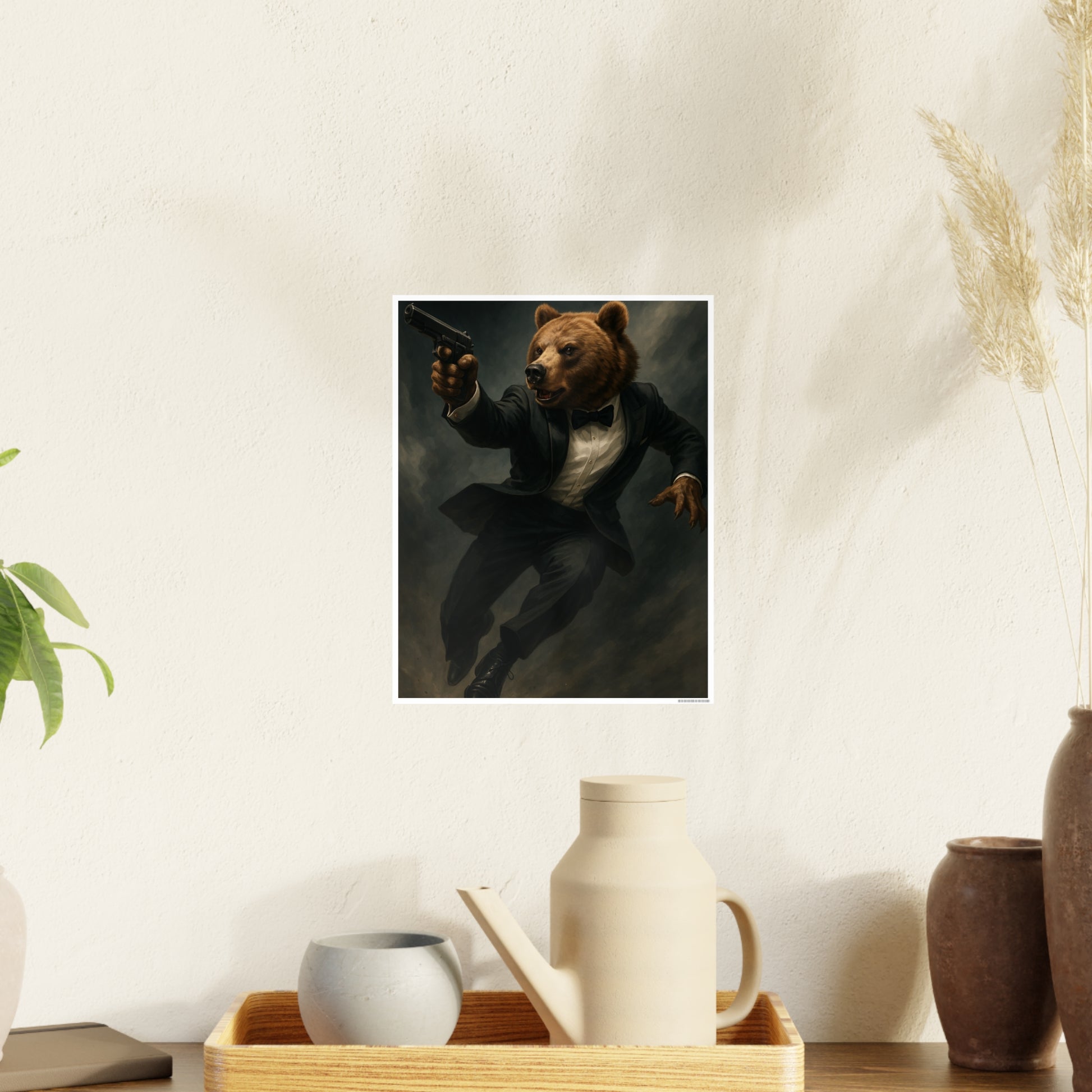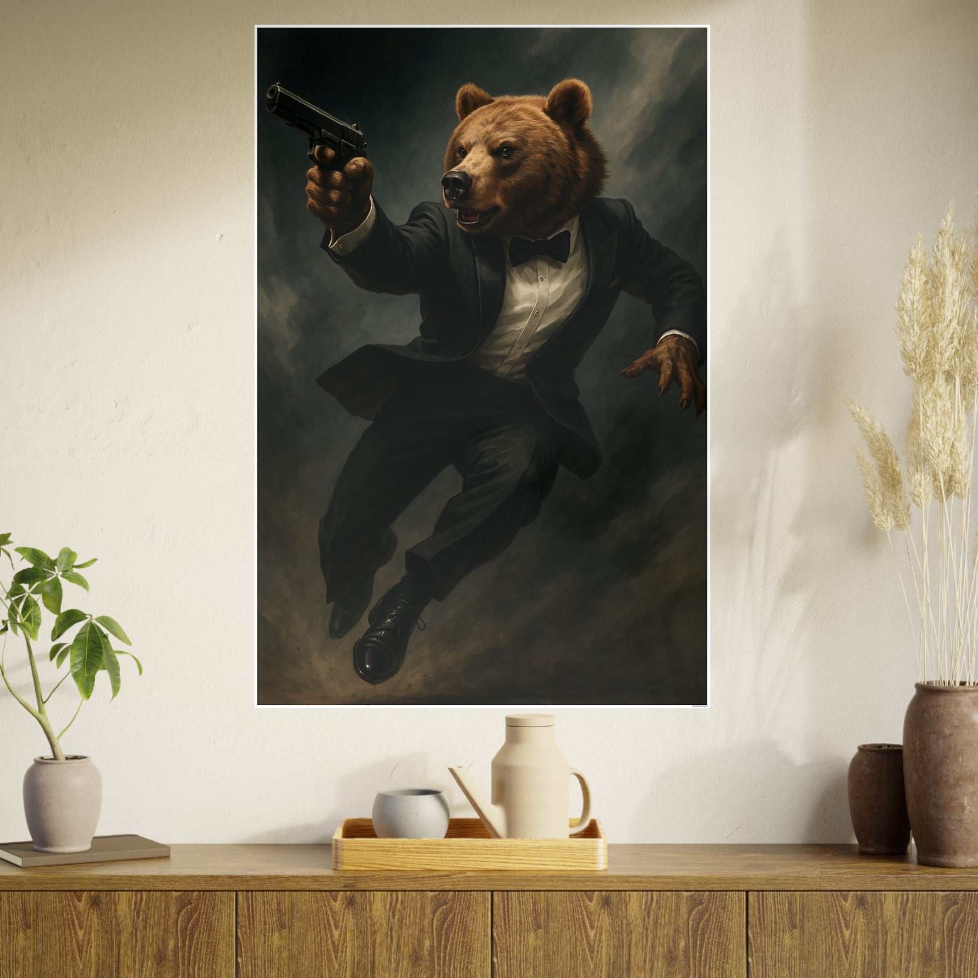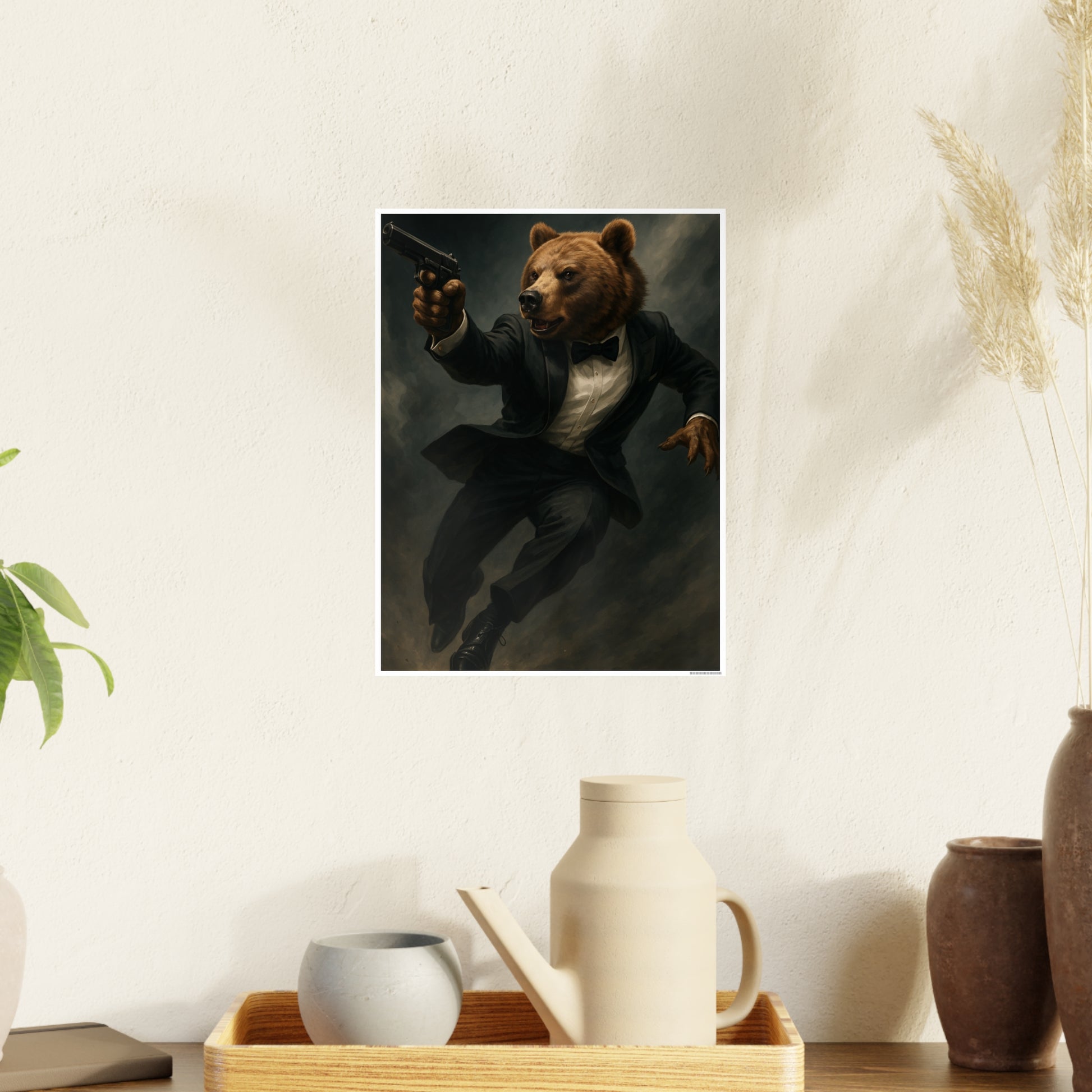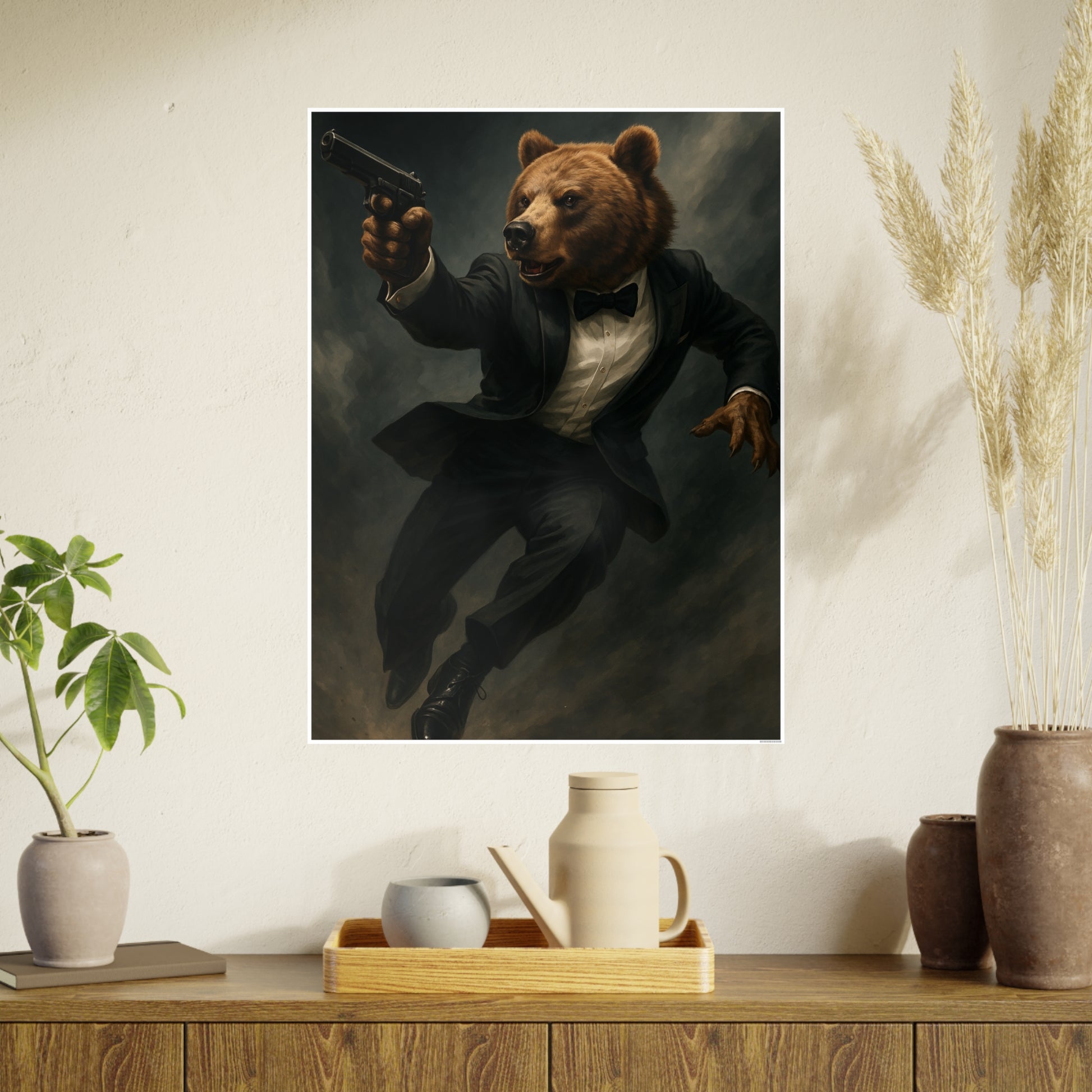 This James Bond inspired Bear Unique Wall Decor poster is the perfect addition to any home or office. With vibrant colors and a smooth satin finish, it brings a fun and creative atmosphere to any room. Ideal for animal lovers, it makes a great gift for those who appreciate unique interior design. Perfect for birthdays, housewarmings, or to add a touch of personality to any space.