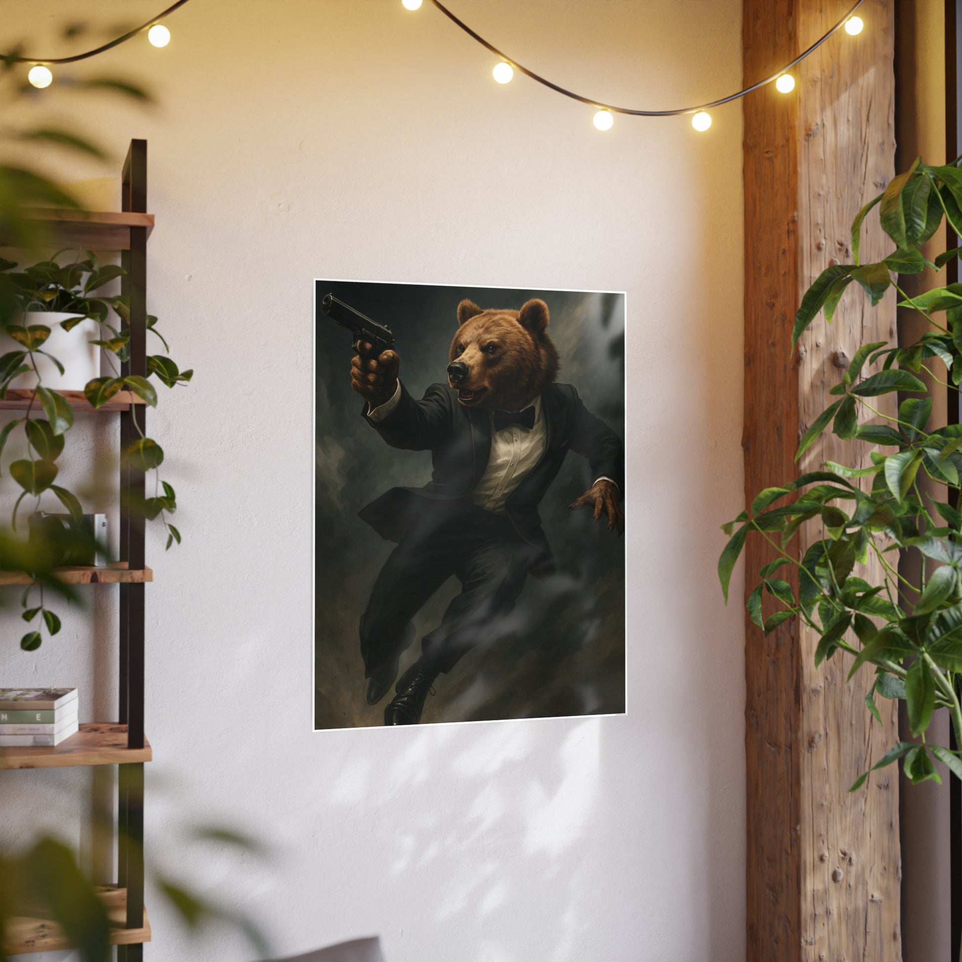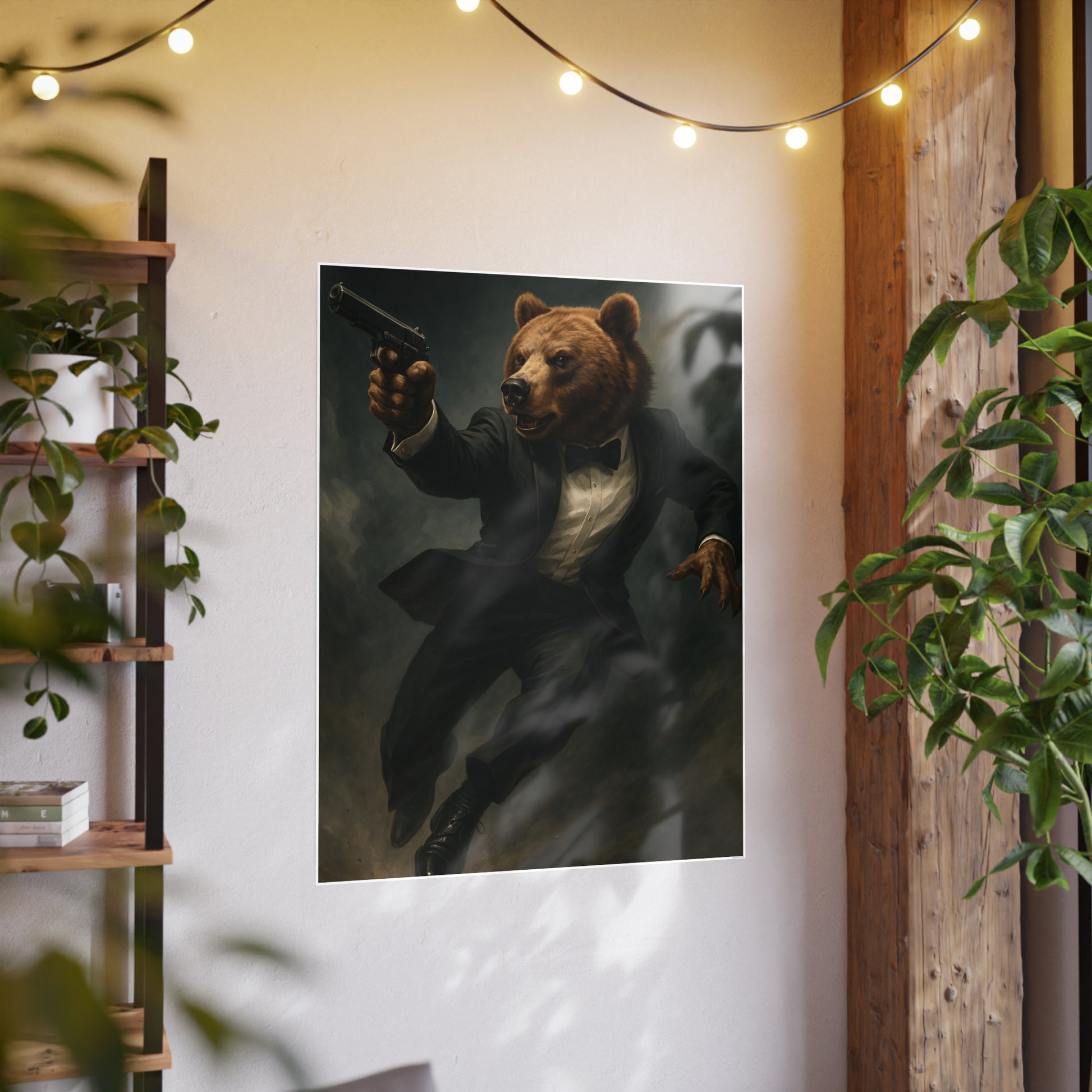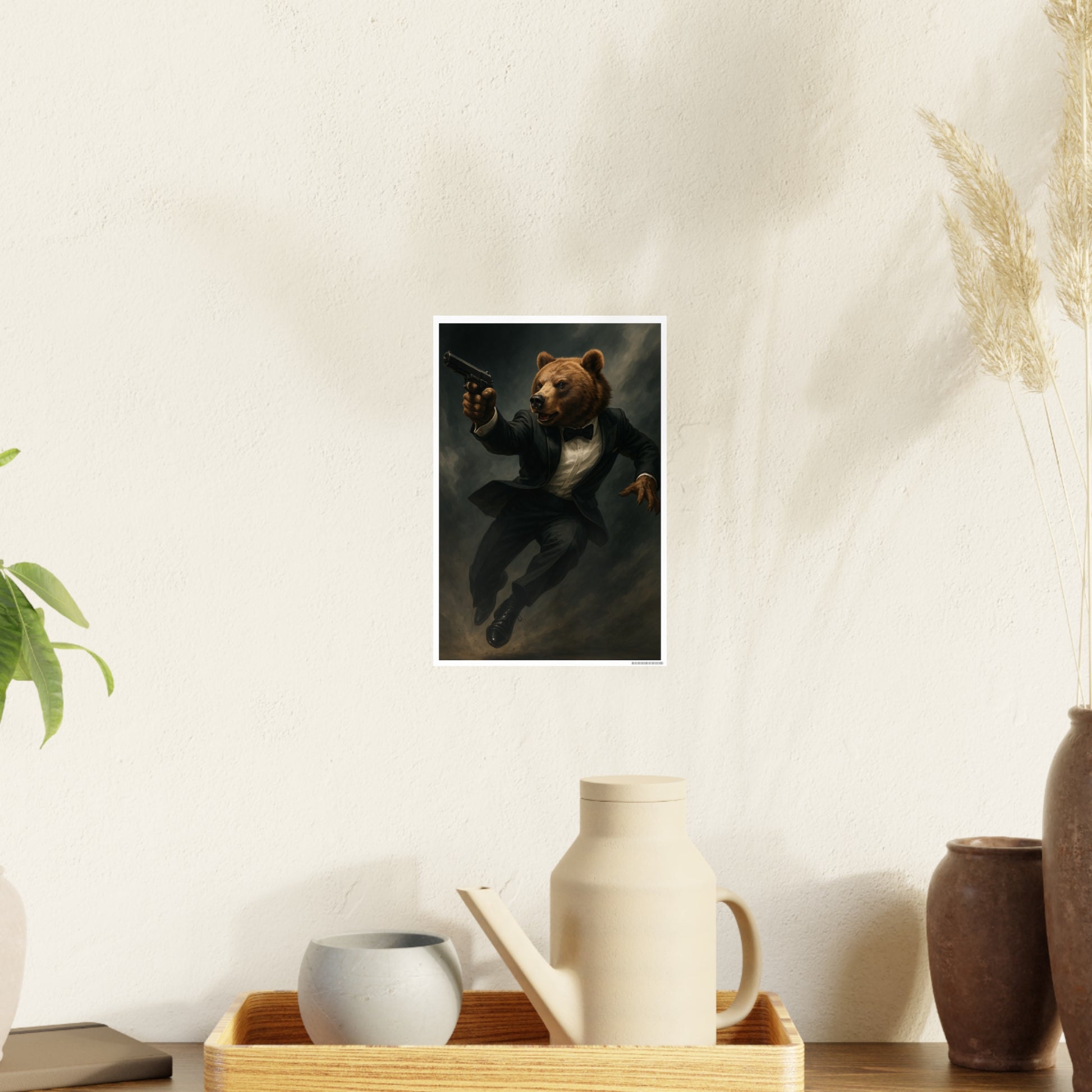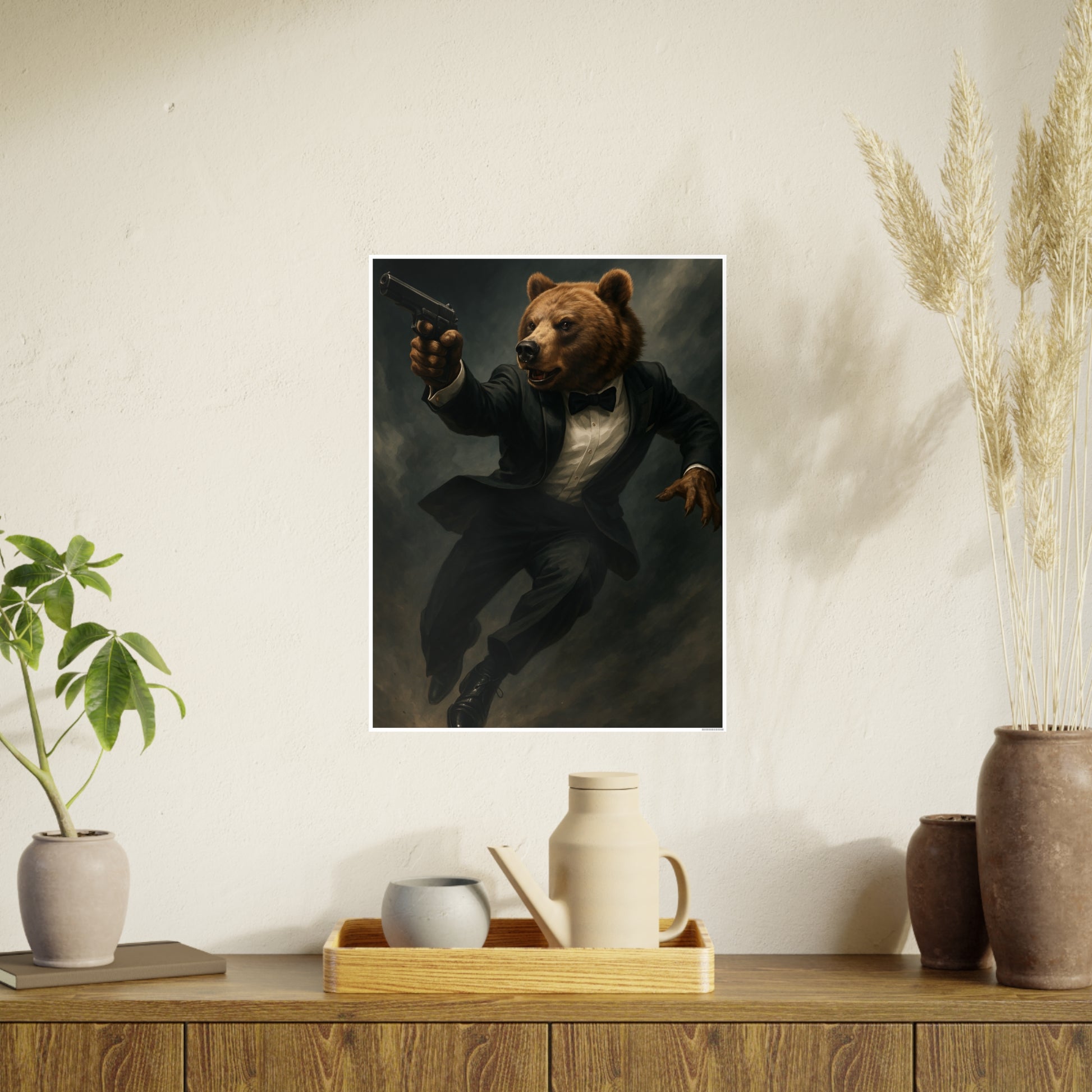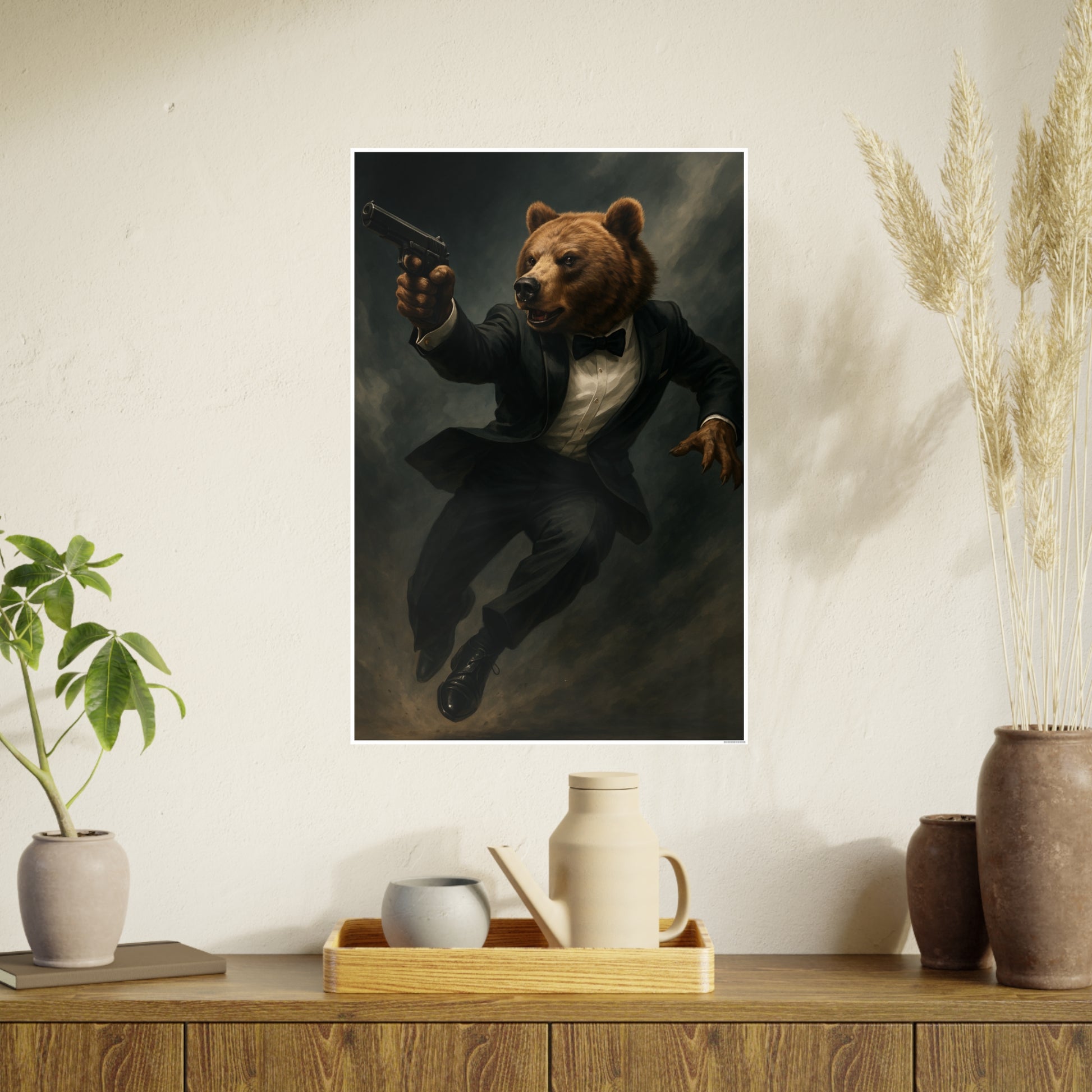 This James Bond inspired Bear Unique Wall Decor poster is the perfect addition to any home or office. With vibrant colors and a smooth satin finish, it brings a fun and creative atmosphere to any room. Ideal for animal lovers, it makes a great gift for those who appreciate unique interior design. Perfect for birthdays, housewarmings, or to add a touch of personality to any space.