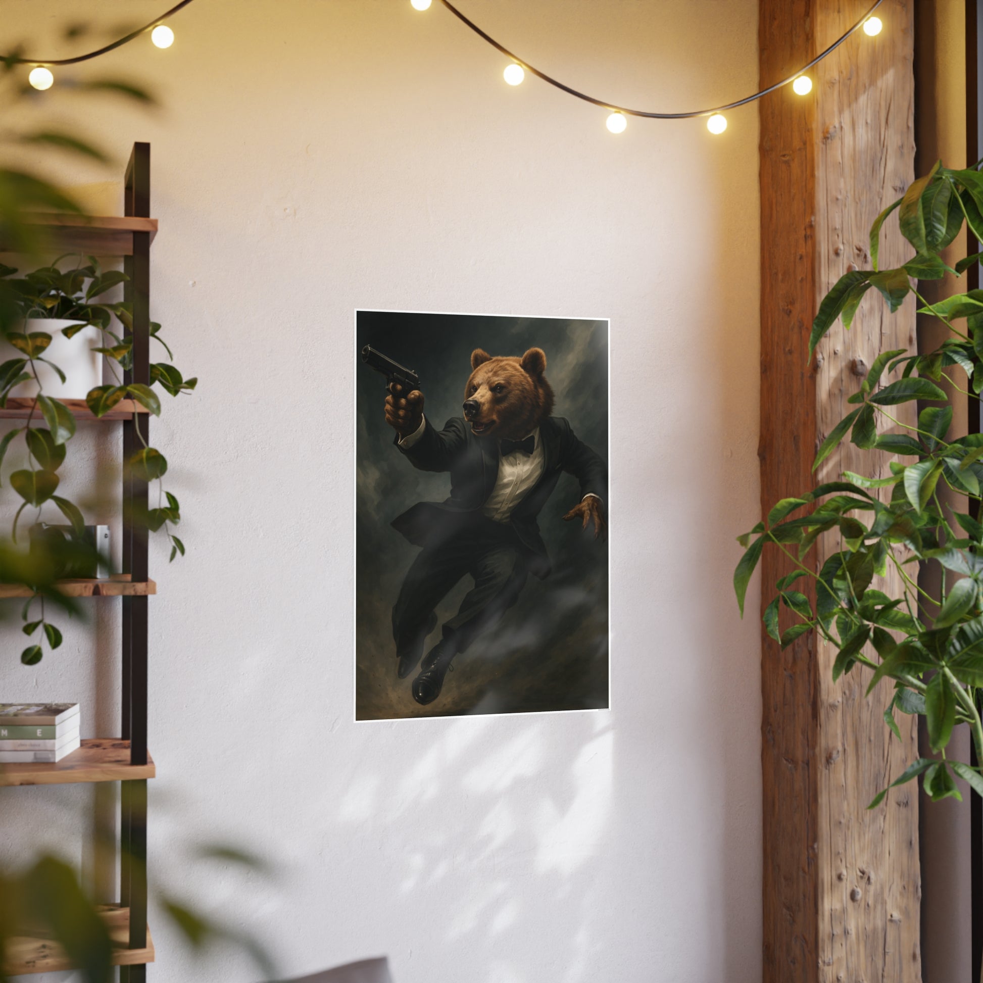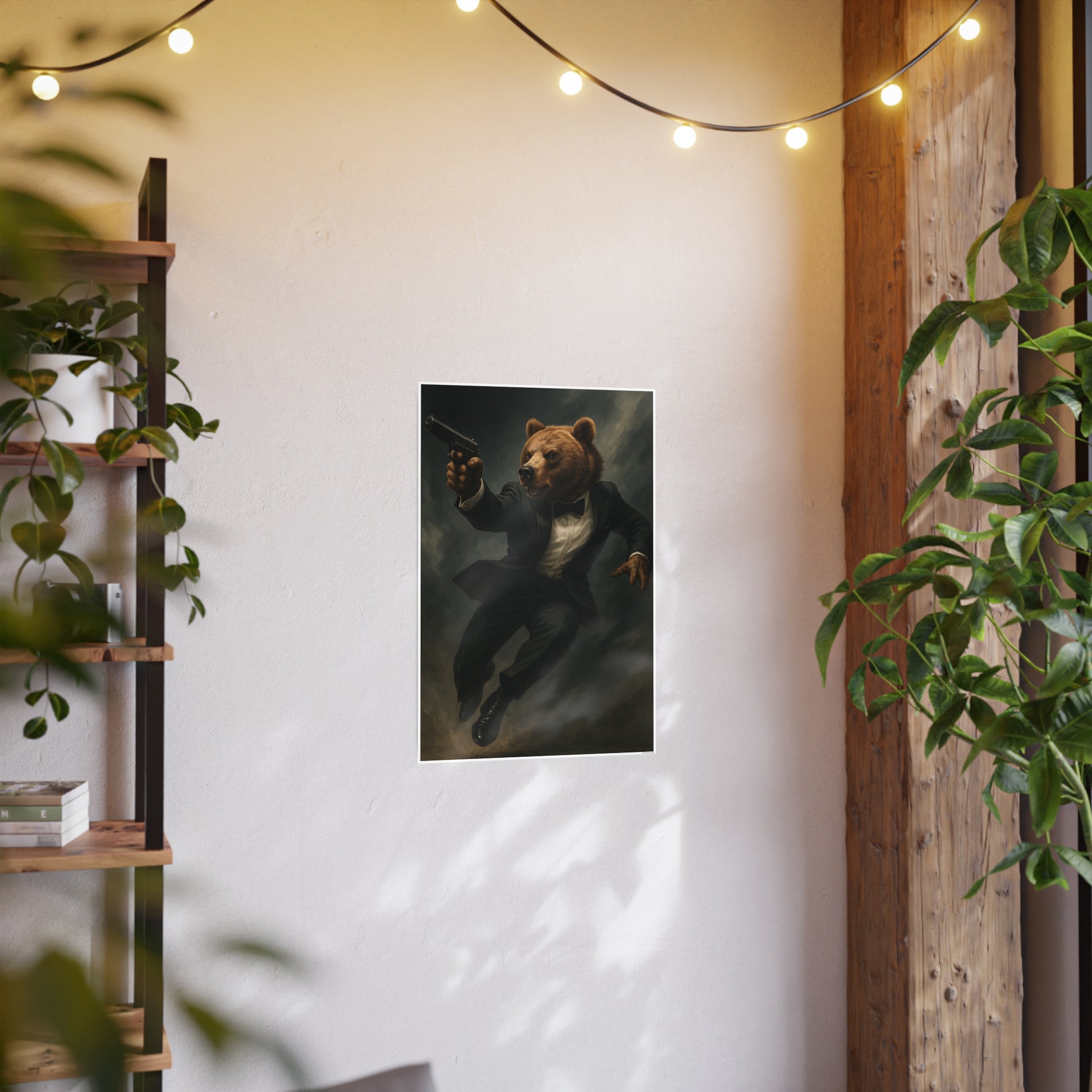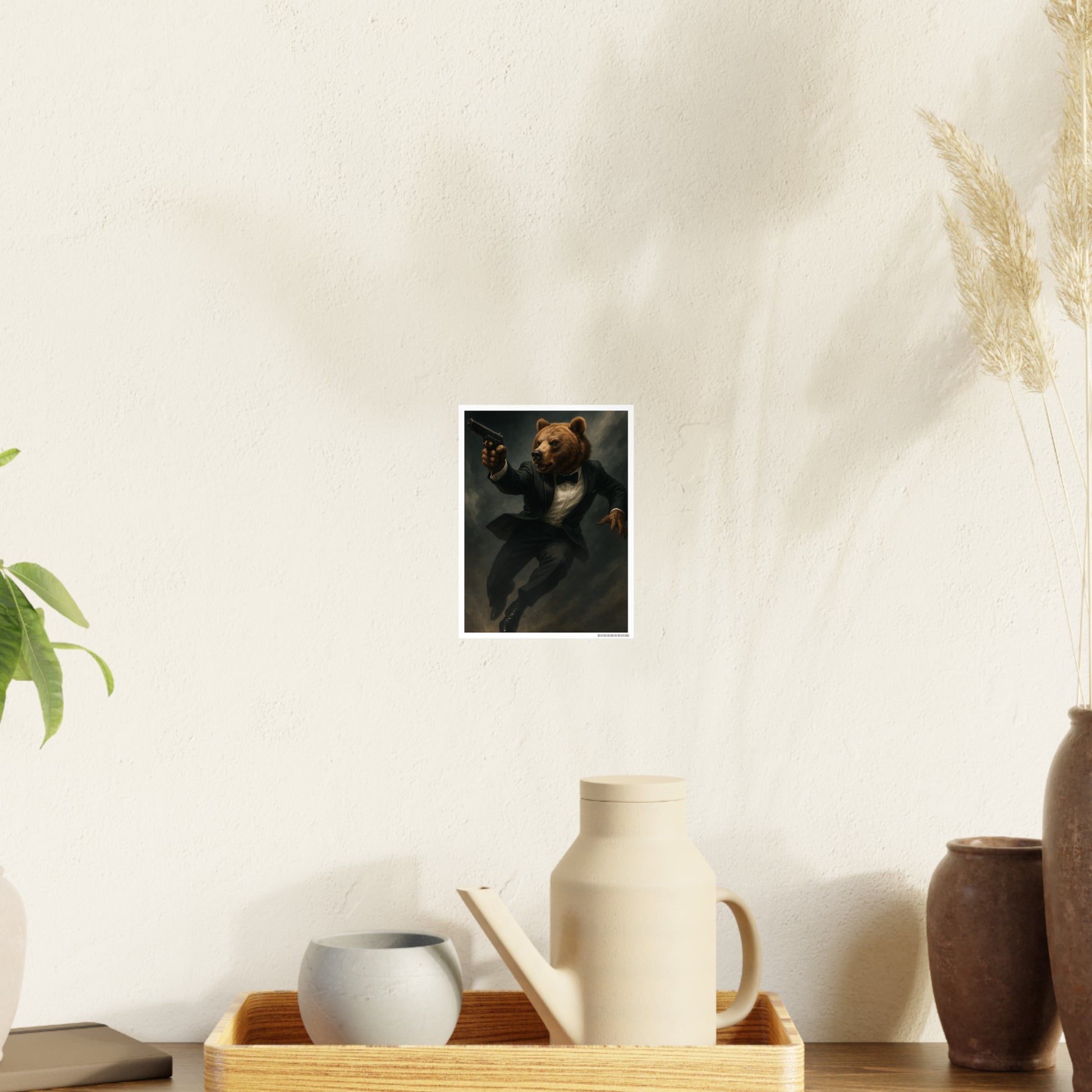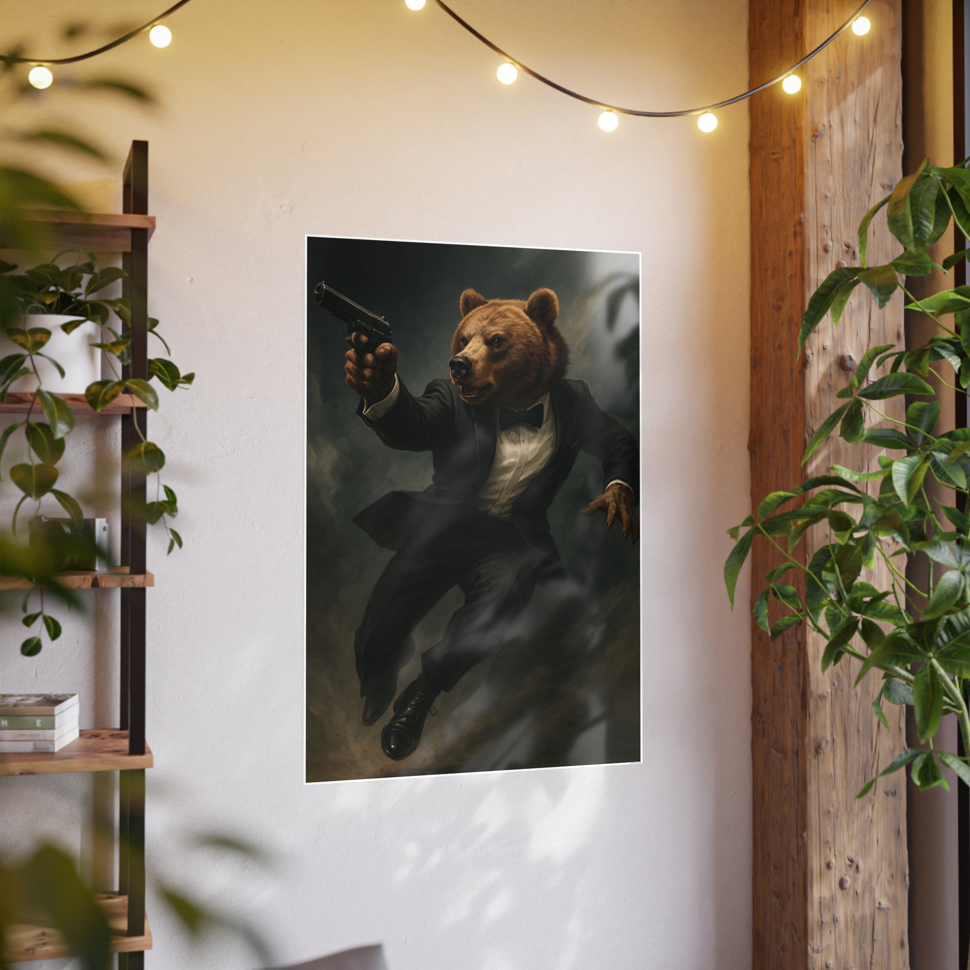 This James Bond inspired Bear Unique Wall Decor poster is the perfect addition to any home or office. With vibrant colors and a smooth satin finish, it brings a fun and creative atmosphere to any room. Ideal for animal lovers, it makes a great gift for those who appreciate unique interior design. Perfect for birthdays, housewarmings, or to add a touch of personality to any space.