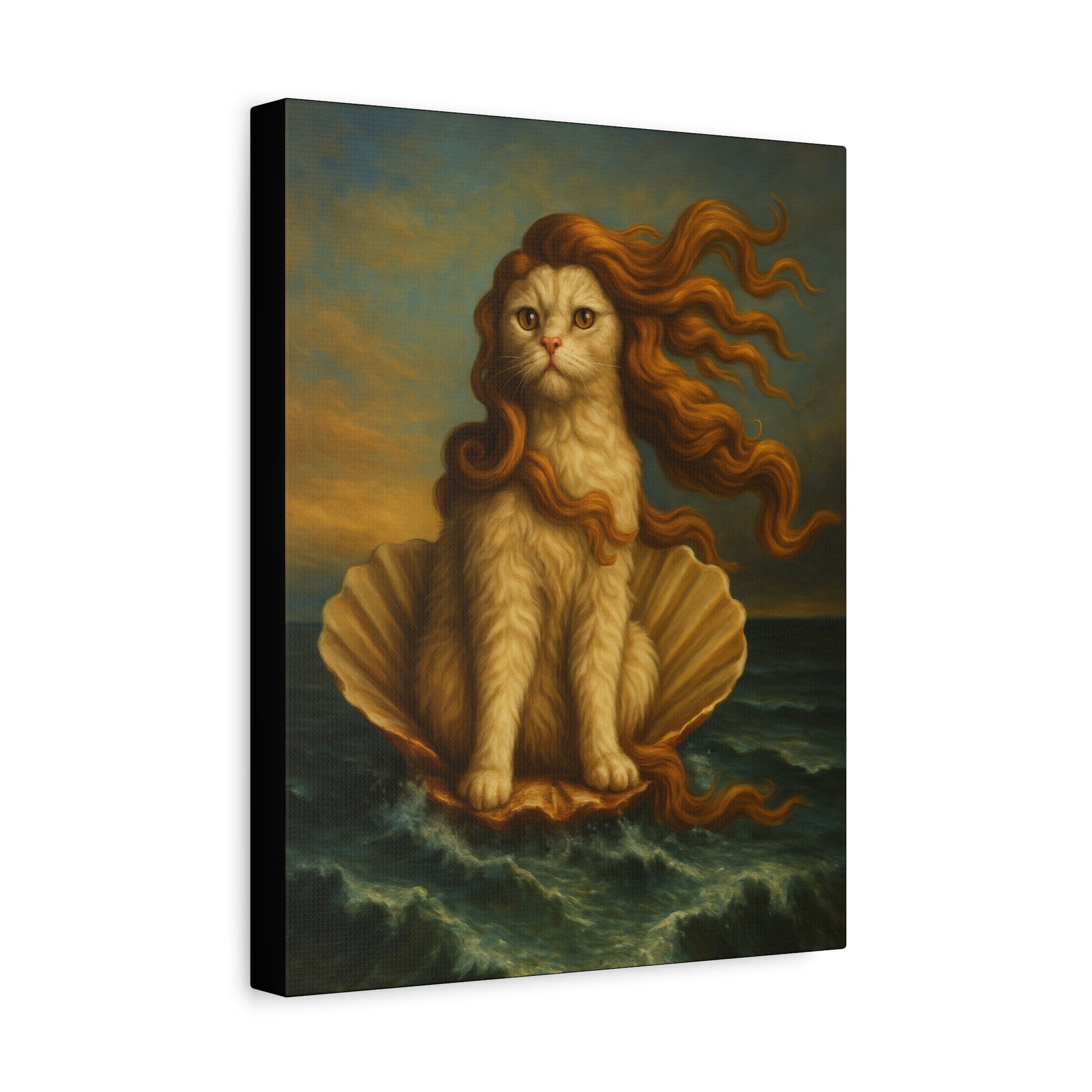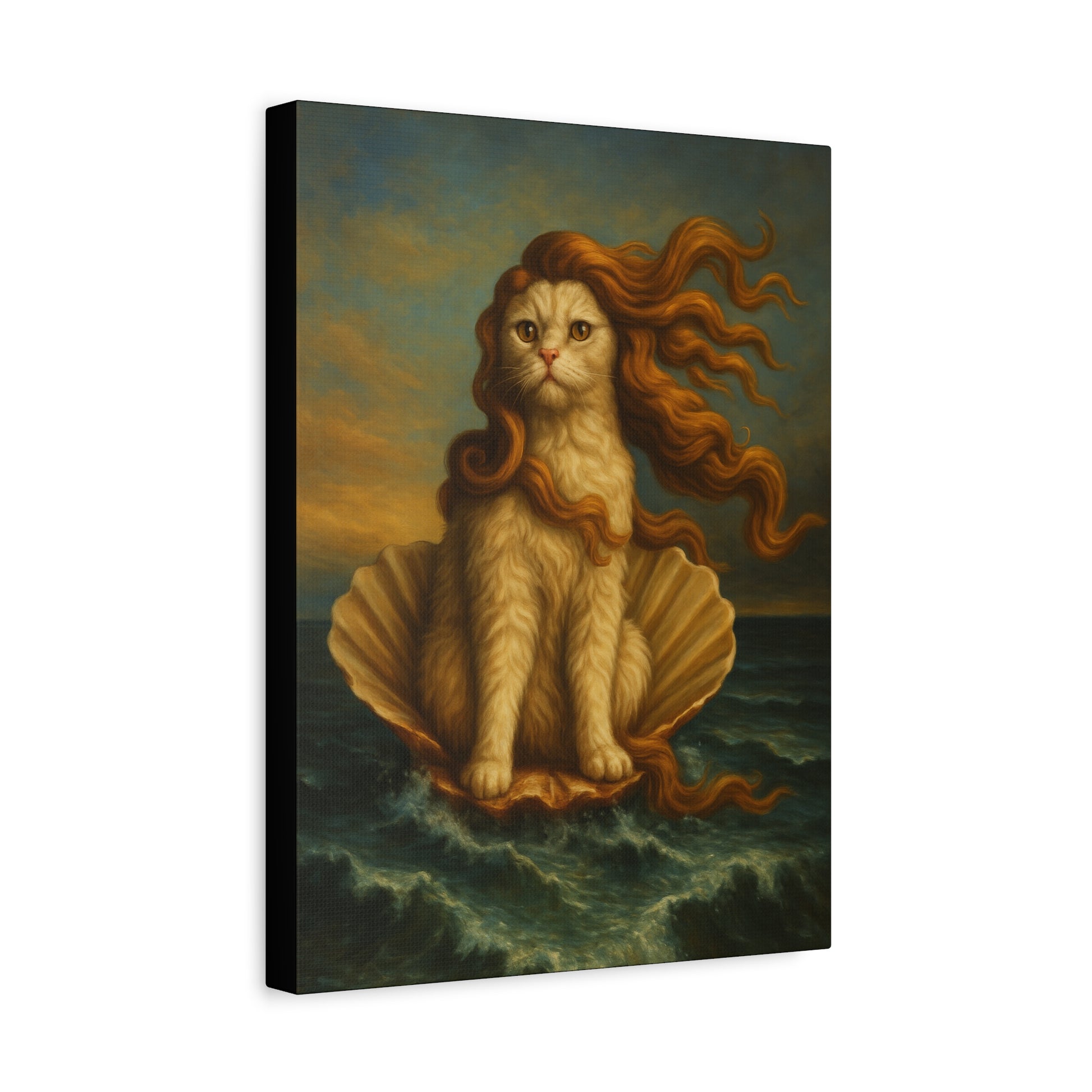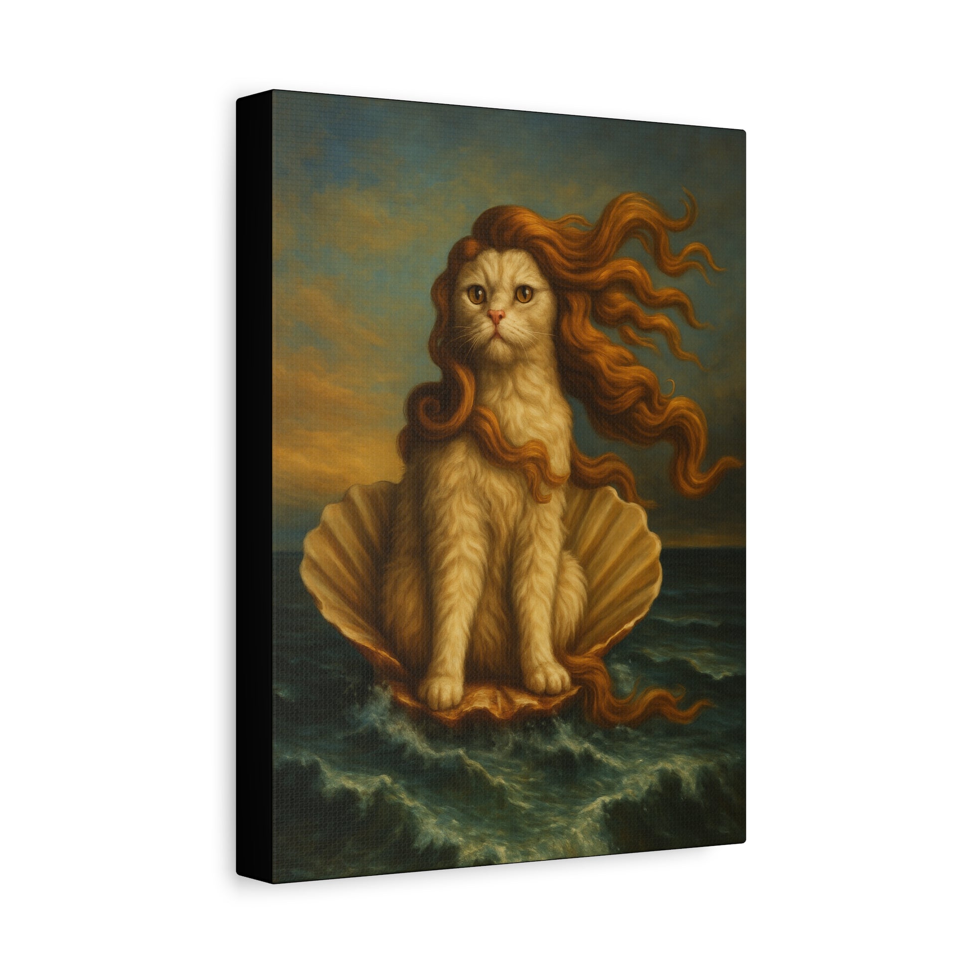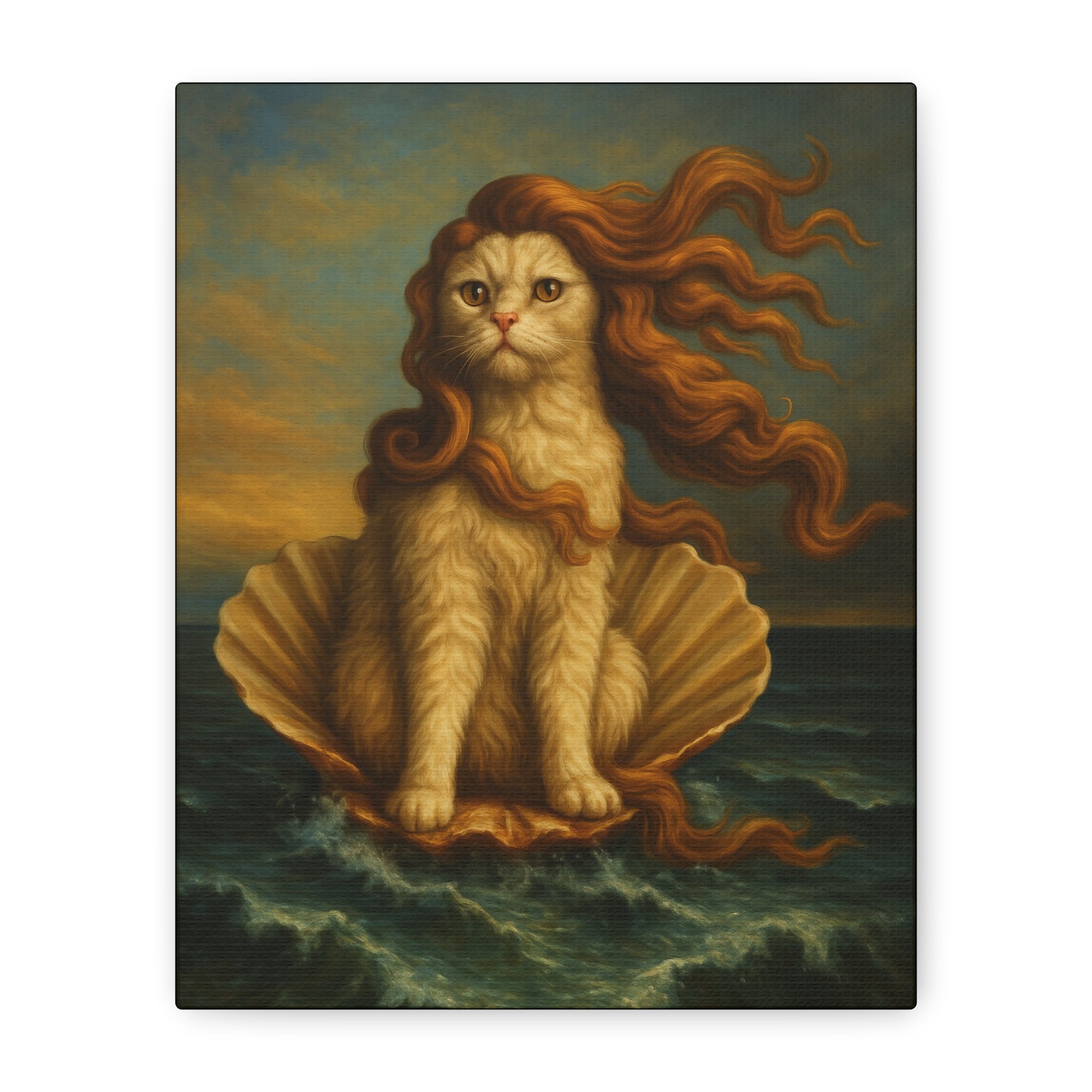 Venus Whimsical Cat Print, Feline Decor, Pet Lover Gift - Stretched Matte Canvas 1 25", Home Decor, Cat Wall Decor