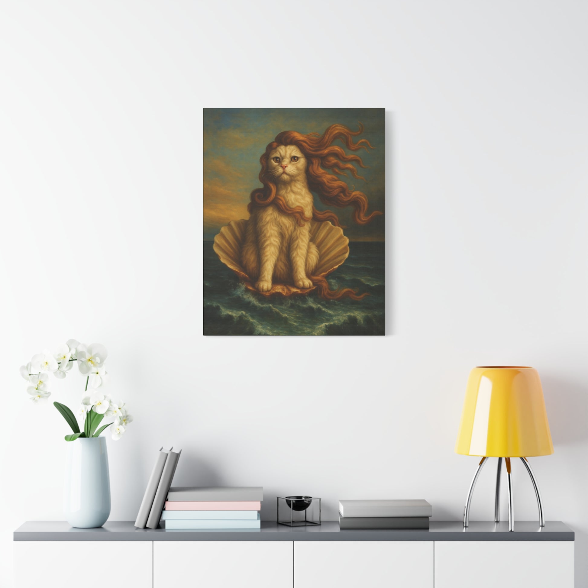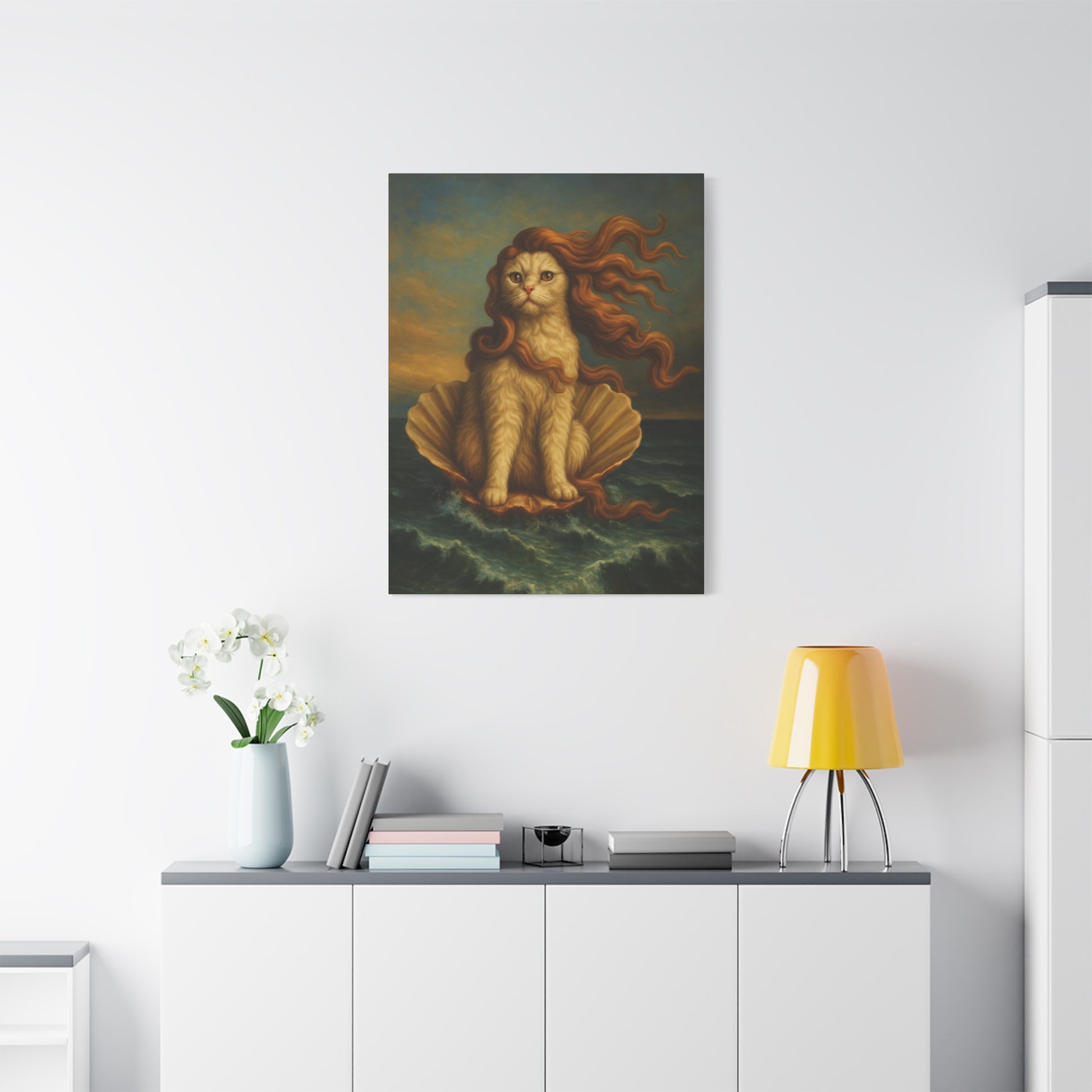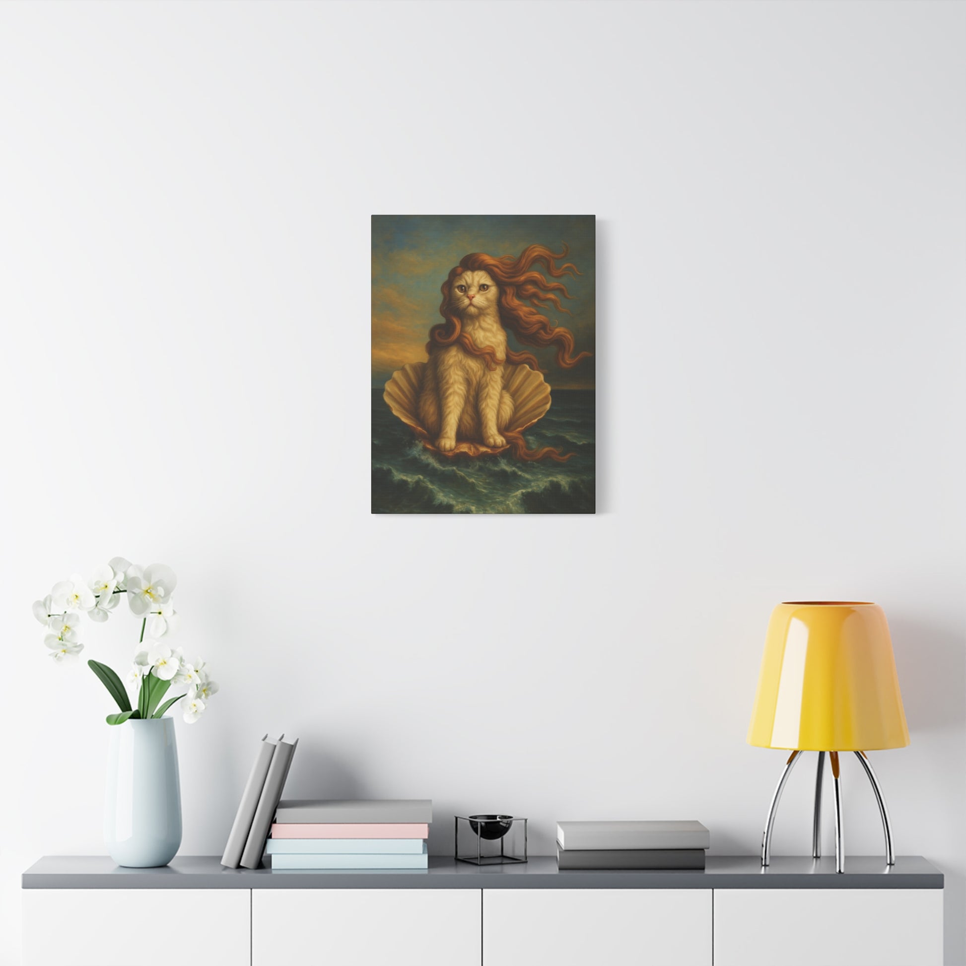 Venus Whimsical Cat Print, Feline Decor, Pet Lover Gift - Stretched Matte Canvas 1 25", Home Decor, Cat Wall Decor