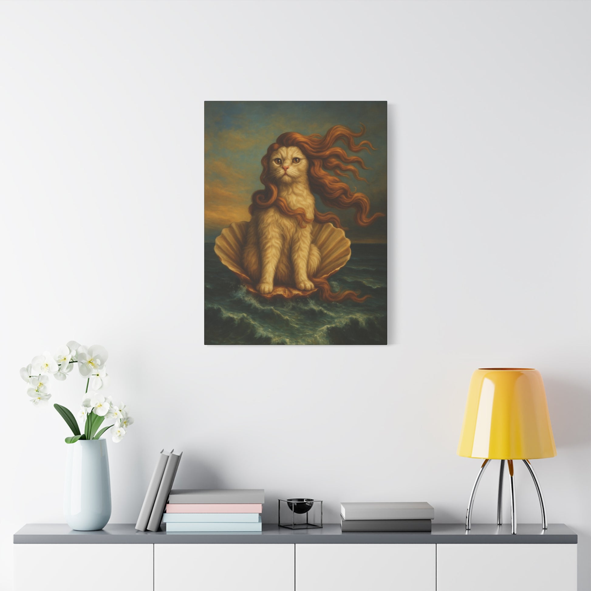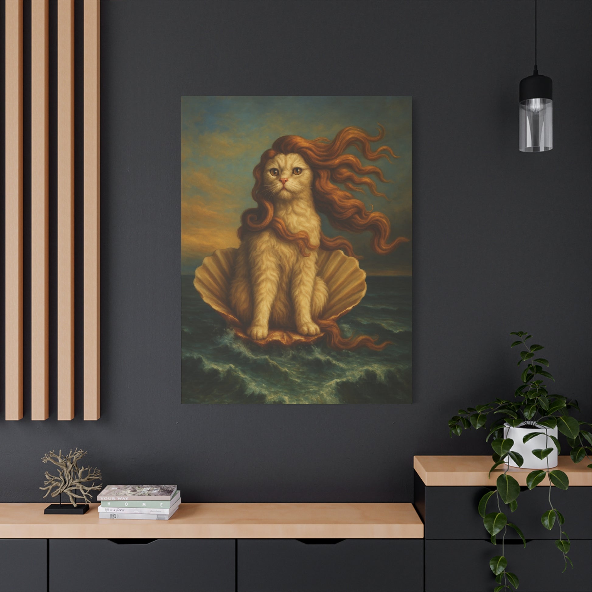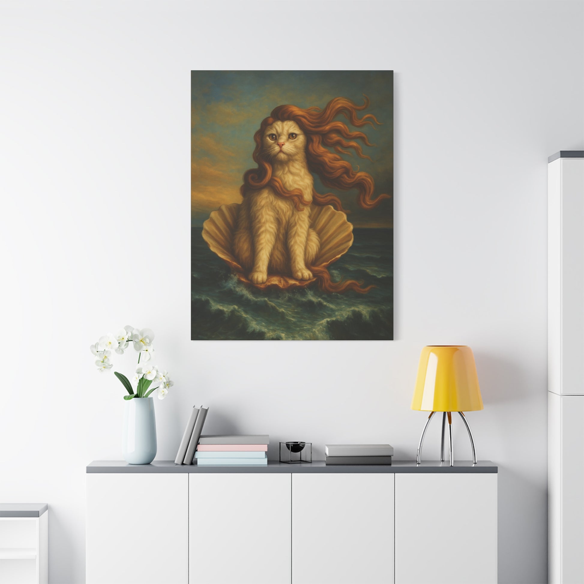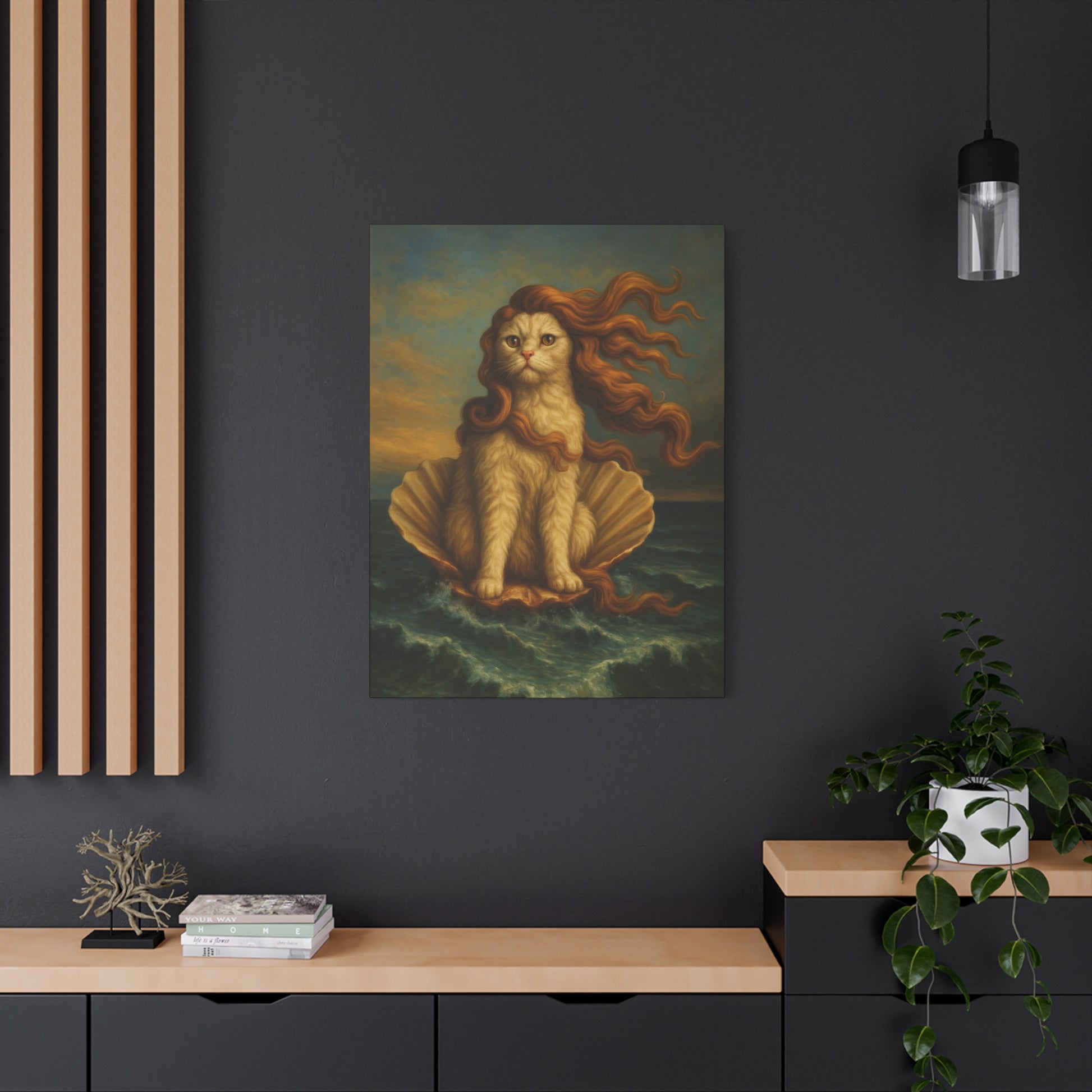 Venus Whimsical Cat Print, Feline Decor, Pet Lover Gift - Stretched Matte Canvas 1 25", Home Decor, Cat Wall Decor